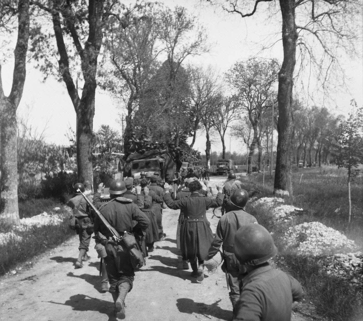 落到法国人手里了,命运不太妙啊——法国内地军(FFI)的士兵正押解在“罗扬包围圈