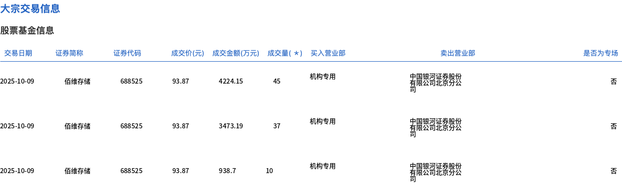 10月9日,佰维存储大宗交易成交95万股,成交额8917.65万元,占当日总成交额的2.13%,成交价93.87元,较市场收盘价106.74元折价12.06%。