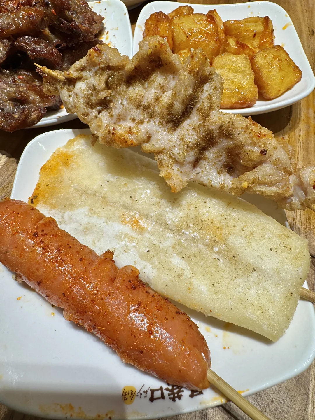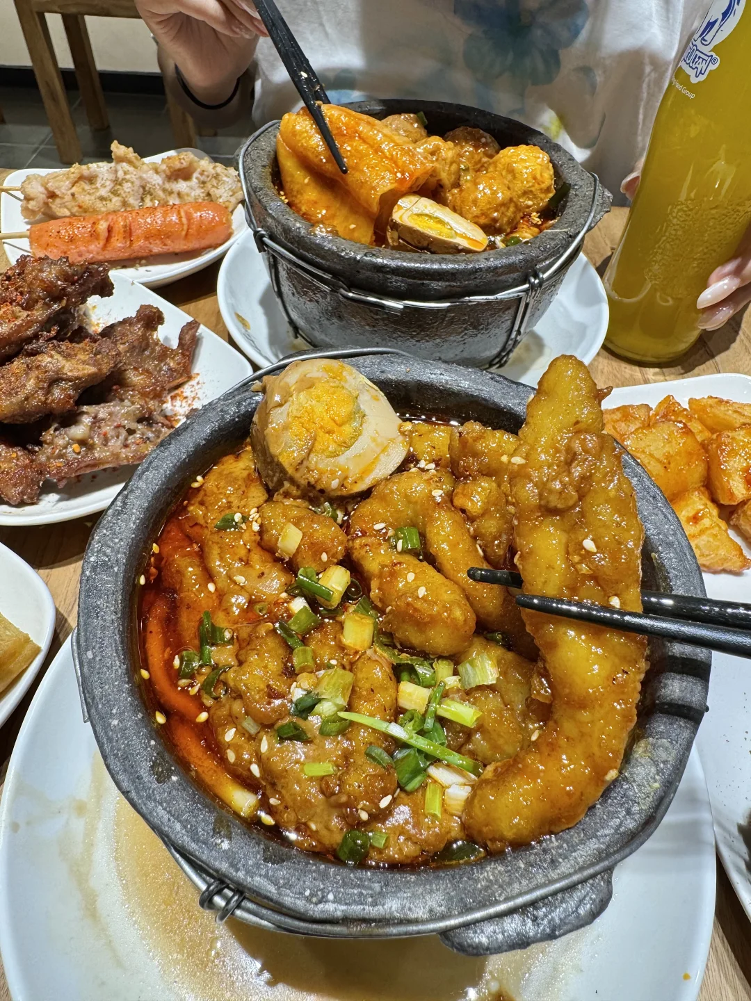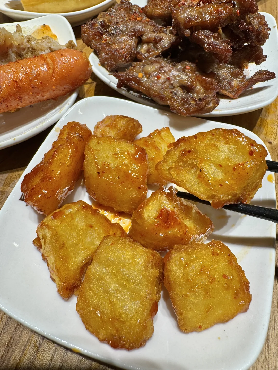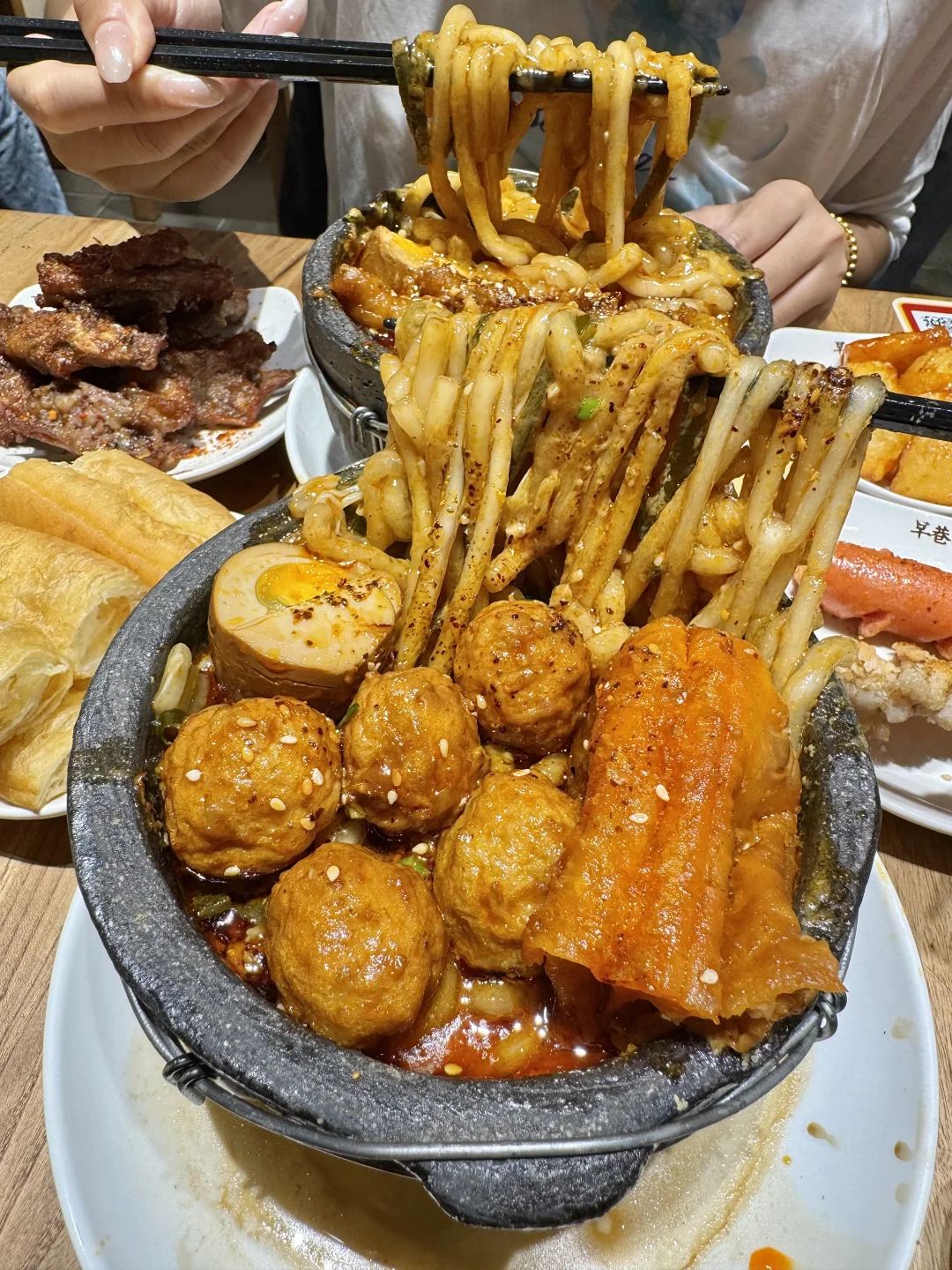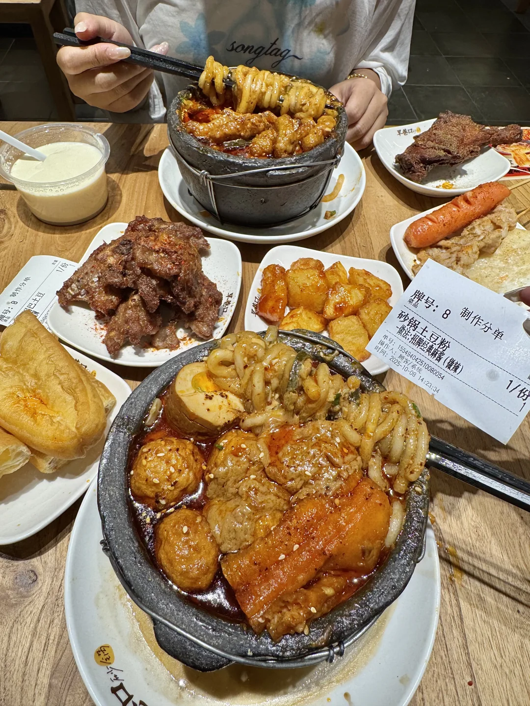 馋了了好久的麻酱土豆粉🤤吃上了!!!上桌半天还在咕噜咕噜的!!加了好多好多麻酱,好浓郁啊啊啊……香到糊嘴!!! 还有有年糕、里脊、鸡架…都好次啊啊啊