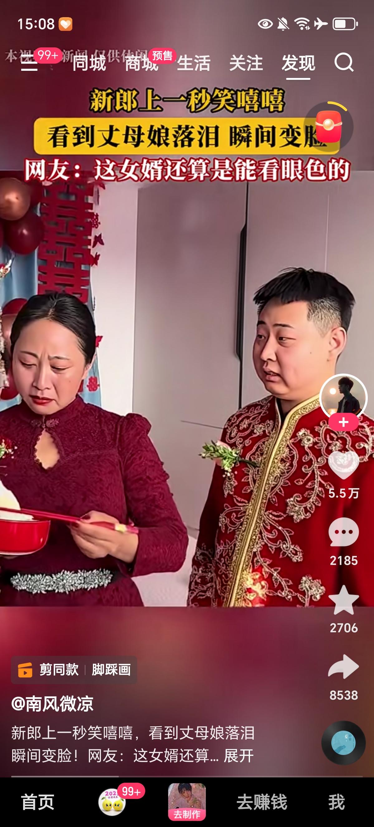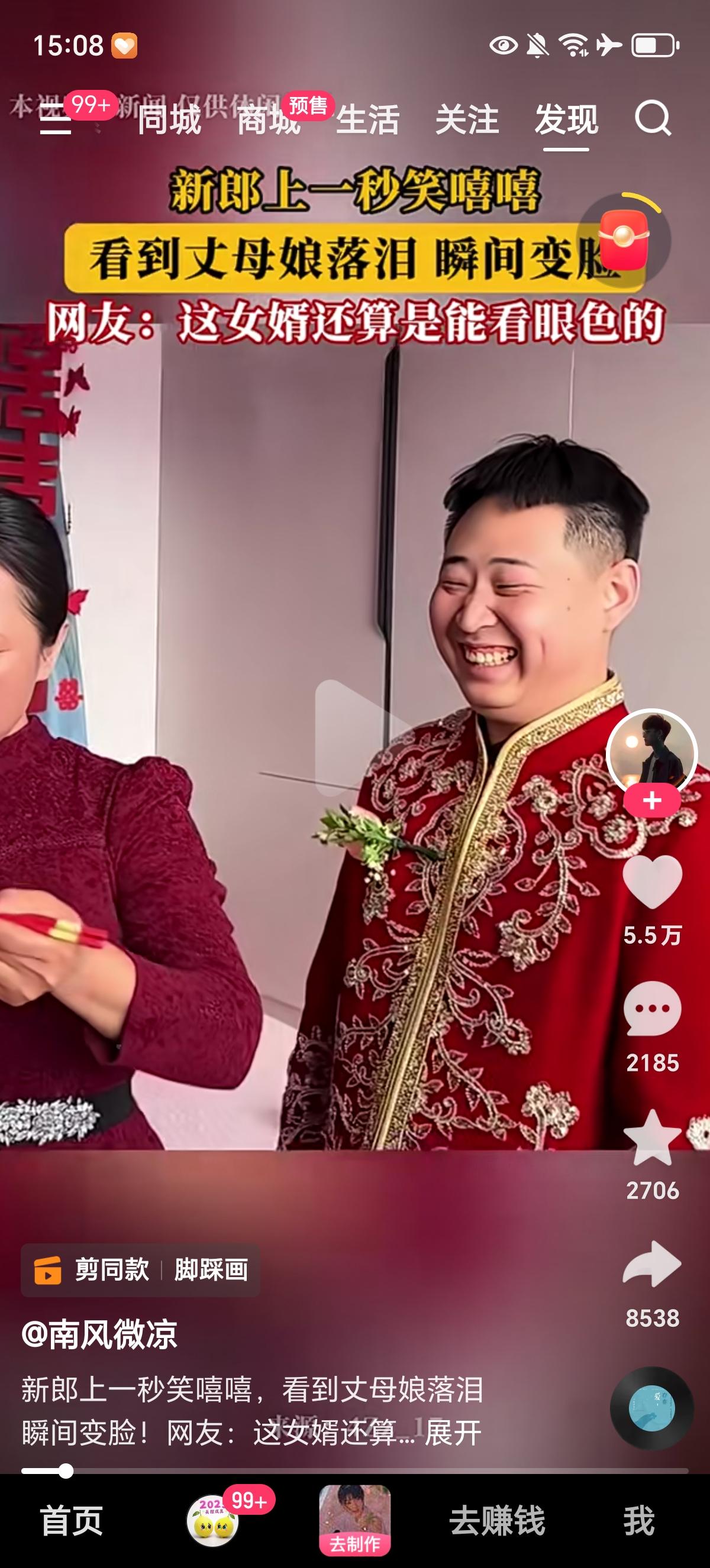 新郎上一秒美的呲着大白牙笑嘻嘻,下一秒看到丈母娘流泪火速变脸,小心翼翼的看着丈母娘,怕丈母娘发现自己太开心了嫌弃自己,这忐忑的小表情真是绝了。 新郎不去当演员都屈才,明明心里都美的冒泡了,看丈母娘长的这么漂亮也知道新娘子得多好看啊,个子跟新郎都差不多了。这把可下把人娶到手了,就差今晚入洞房了,可不能惹丈母娘不高兴,必须忍着,严肃脸拉满。