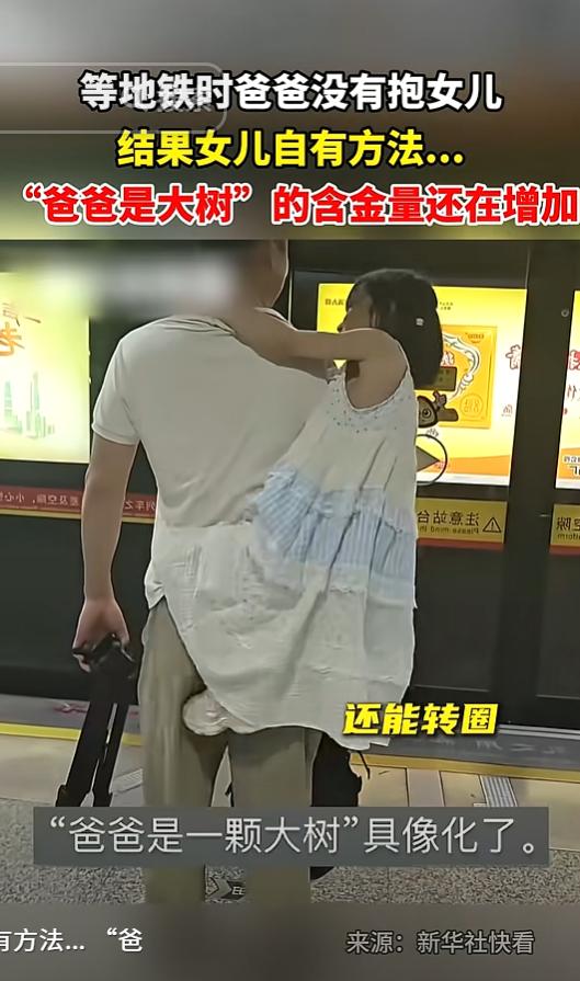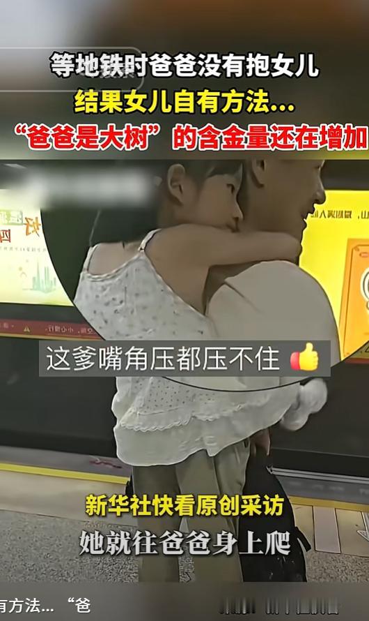 嘴角都压不住了!广东,男子等地铁时,女儿非要抱抱,男子没有理会,没想到,女儿竟然自己爬了上去,让男子抱着,还露出了得逞的微笑,网友:太羡慕了! 10月5日,男子带妻子和女儿出去玩,等地铁时,他拿着背包,一旁的女儿却撒娇让抱抱。 男子想着等上车再抱,女儿却自己想办法,她站在身后,一个弹射,跳到爸爸身上,然后像爬树一样,爬到背上,最后竟然还会转到前面。 一旁的妈妈笑开了花,用手机记录下了这一场景。 妈妈表示,平时女儿就总是让爸爸陪她玩,父女俩关系很好,她也没想到,女儿会这么有办法。 有网友喊话,让他们送孩子学体操,看起来很有天赋! 还有人觉得,“爸爸像大树”在此刻具象化了。 爸爸平时肯定没少陪孩子,三下五除二攀爬到了爸爸身上,胳膊上看着都有肌肉了,平时肯定没少玩,像个猴子一样机灵,这小女孩也引起了网友的喜爱。 妈妈在旁边看着,亲子之间的关系,太令人羡慕了。 更珍贵的是,爸爸对孩子的爱太真实了,没有因为手里拿着东西太累指责孩子,而是满脸开心的笑,让孩子感受到他的温柔。 有网友想到,自己小时候,跟爸爸相处很少,平时只知道他很忙,休息了很少陪自己玩,导致自己长大后,也只亲近妈妈,跟爸爸关系疏离,看到别人和父亲关系好,心里只有羡慕。 网友说送娃去学体操,其实比天赋更珍贵的是爸爸的爱和 “纵容”。手里明明拎着包,还是笑着接住扑过来的孩子,自己再累,也要让孩子开开心心的。 孩子的感受,比什么都重要,等到她长大,想起这一刻,还会像小时候一样感觉到幸福。 真正的爱不是把手机丢给孩子刷,而是无时无刻的陪伴,让孩子脸上有笑容,而不是哭了只能喊妈妈,看到爸爸怯生生的。 无论在哪里,爱都会在,即使是在地铁站,也会留下最珍贵的记忆。 大家羡慕的,不仅仅是孩子和父亲之间的爱,更是这种轻松愉悦的家庭氛围,在爱中长大的孩子,长大了都不会差。 这样的氛围,谁见了不心动呢? (来源:济南时报 2025年10月7日 等地铁时爸爸没有抱女儿 结果女儿自有方法,爸爸是大树”的含金量还在增加)