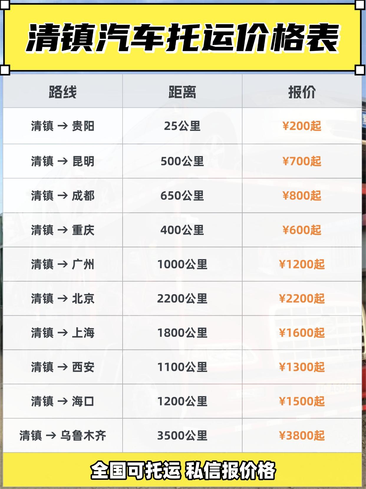 🔥清镇发车全国报价 & 时效大盘点: 基础运费: 小车托运(SUV/轿车)一般在 1.2元~2元/公里 时效参考: 大部分地区 3-7天 送达,偏远地区稍慢哦! ⚠️ 为什么西藏、新疆运费更贵? 路程超远:动辄三五千公里,油费路桥费飙升! 返程难载货:司机回程常常空跑,成本全摊在去程运费里😭 资源稀缺:偏远地区托运车辆少,物以稀为贵呀! ⏰ 托运必看!提前预约时间: ✅ 淡季/常规线路:提前 3-5天 订车稳稳哒~ ✅ 旺季/节假日(春节/国庆):抢手!至少 提前7-10天 锁定车位! ✅ 新疆/西藏/东北等超远线:建议 提前2周 安排,物流调度更从容! 💡托运前必做: 1️⃣ 清理车内物品!贵重物品别放后备箱 2️⃣ 拍好车辆外观视频,避免扯皮 3️⃣ 核对托运合同,明确保险条款!