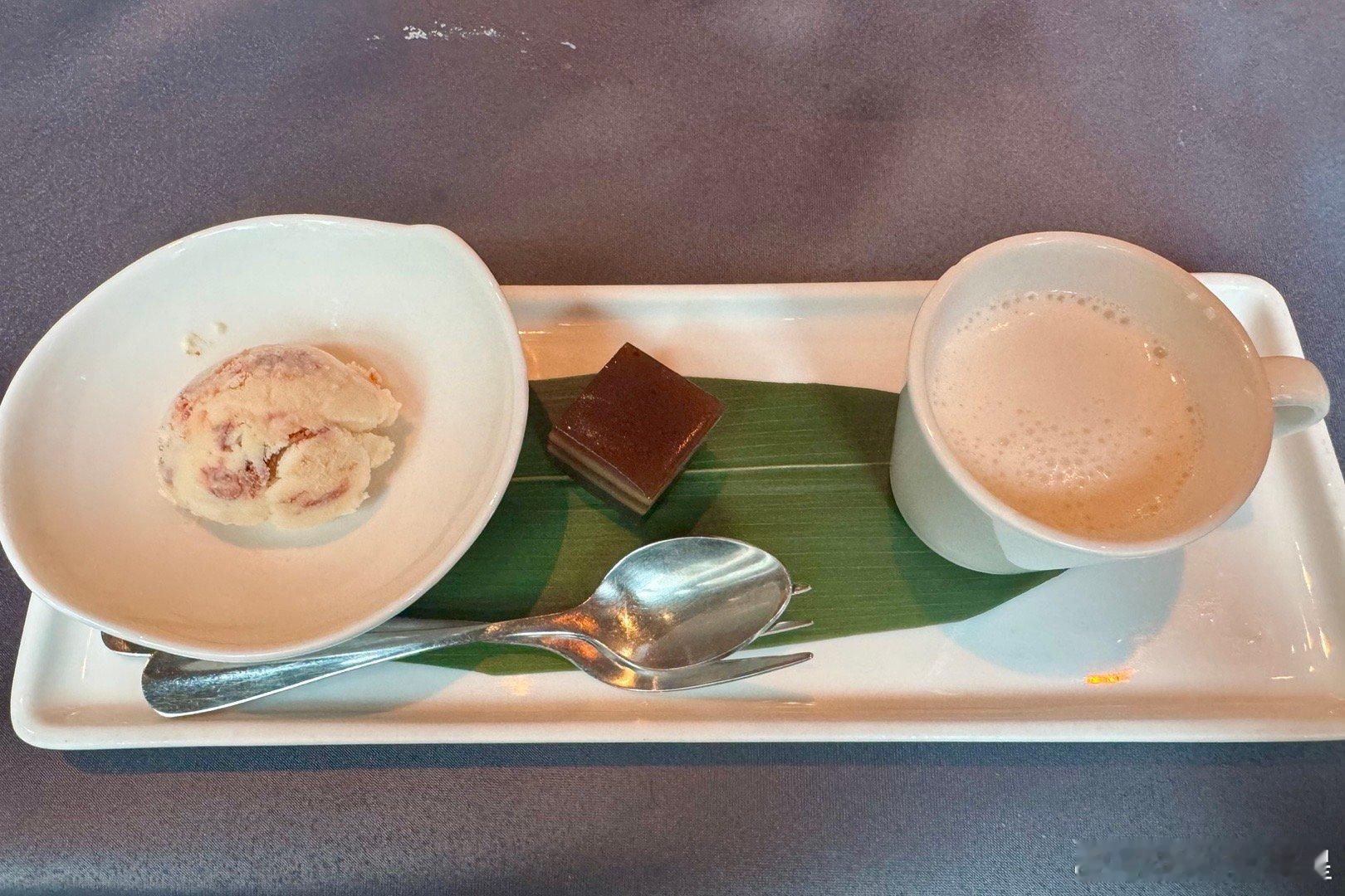 青菜不说了,陈村粉的镬气很足,美拉德反应的焦香让人欣喜,而且炒的很干爽,吃起来完全不觉得油腻。最后甜品三味是桂花杞子雪糕+枣皇糕+杏仁茶,雪糕很是上乘。其奶香味不重,突出桂花和杞子的味道。枣皇糕枣香浓郁,通过与椰奶的组合,达到一种温和的甜品感。杏仁茶打磨细腻,不很甜但香味非常浓郁,感觉很是高级。