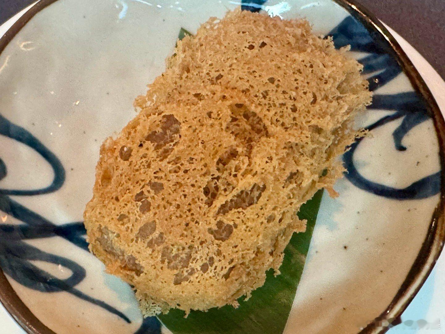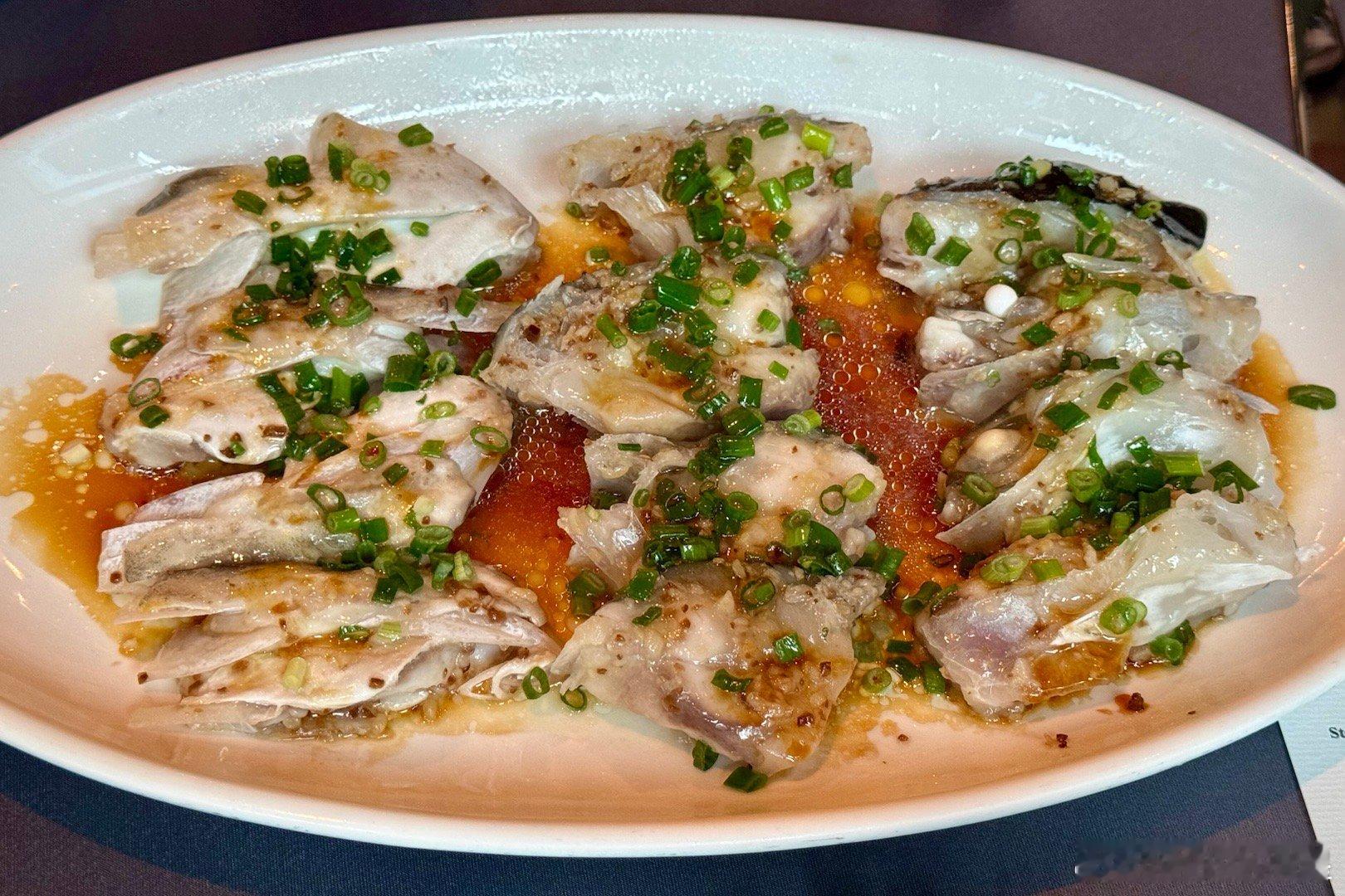 其次是「冻卤水花椒小吊桶酿土鱿」,质地和风味层次分明,完成度很高。鱿鱼肉质柔软,卤水甘甜,椒麻后味悠长,很不错。