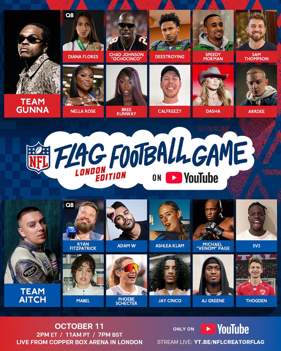 NFL官方:10月11日Gunna与Aitch战队伦敦对决