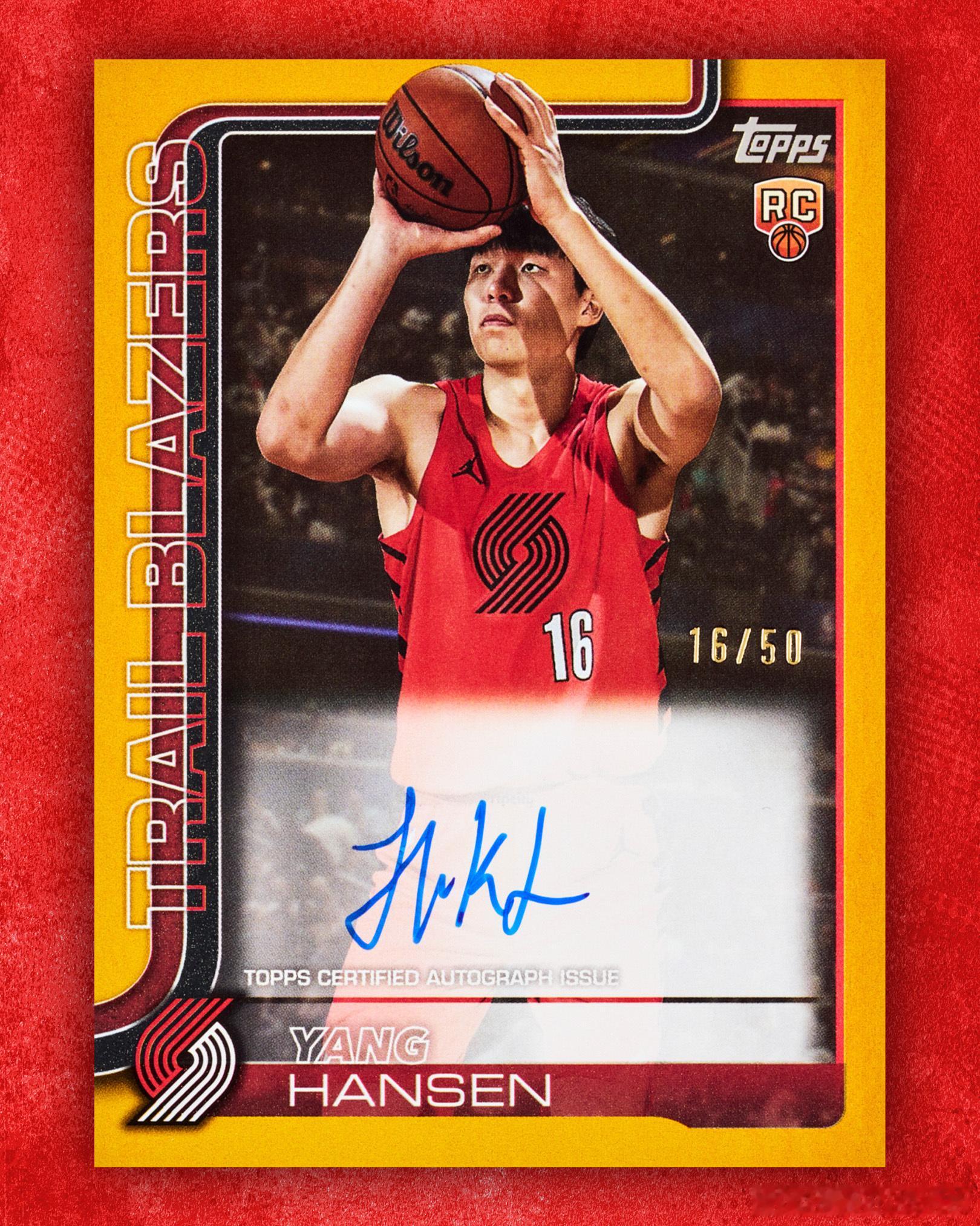 帅!球星卡官方Topps晒出杨瀚森签名卡👀