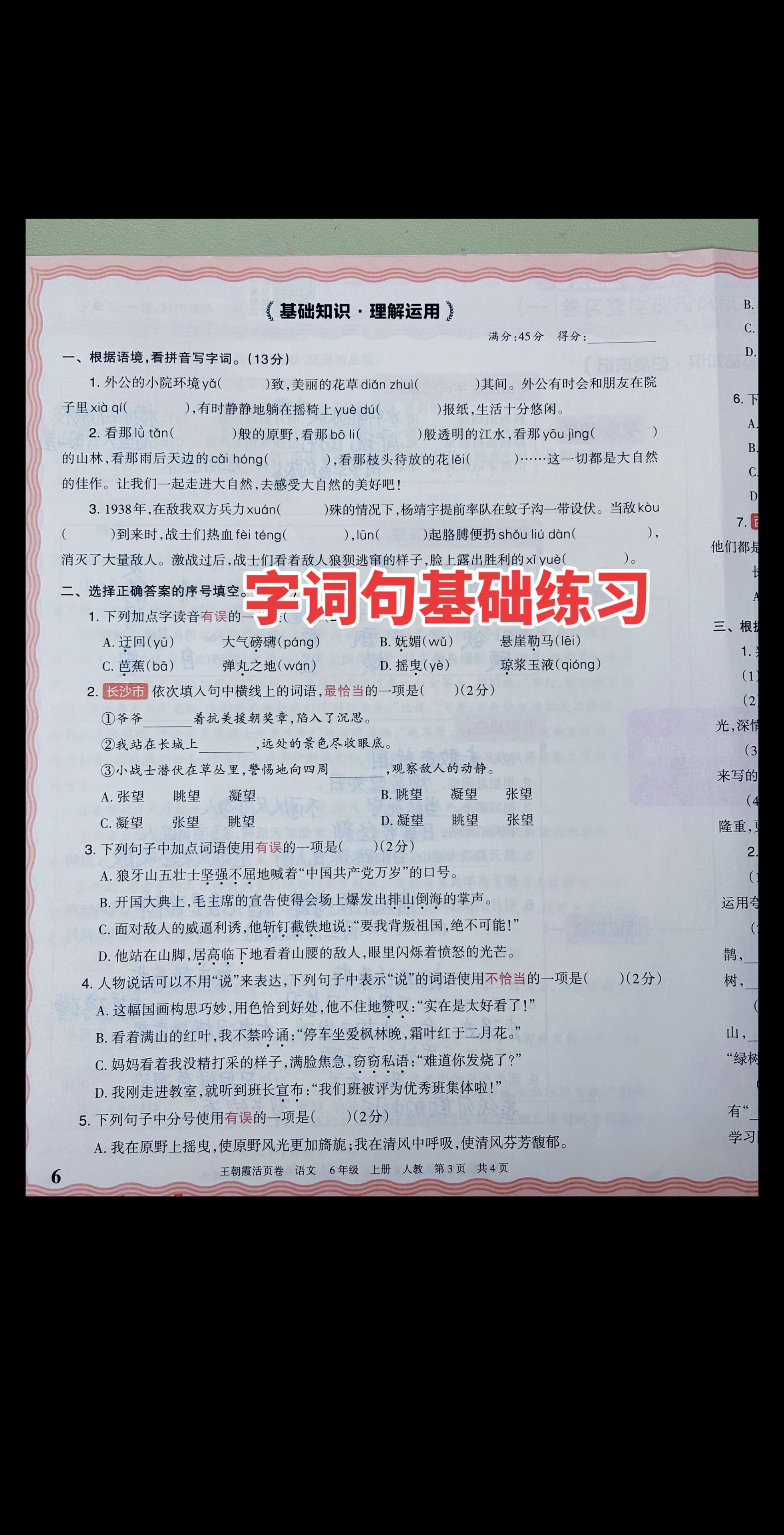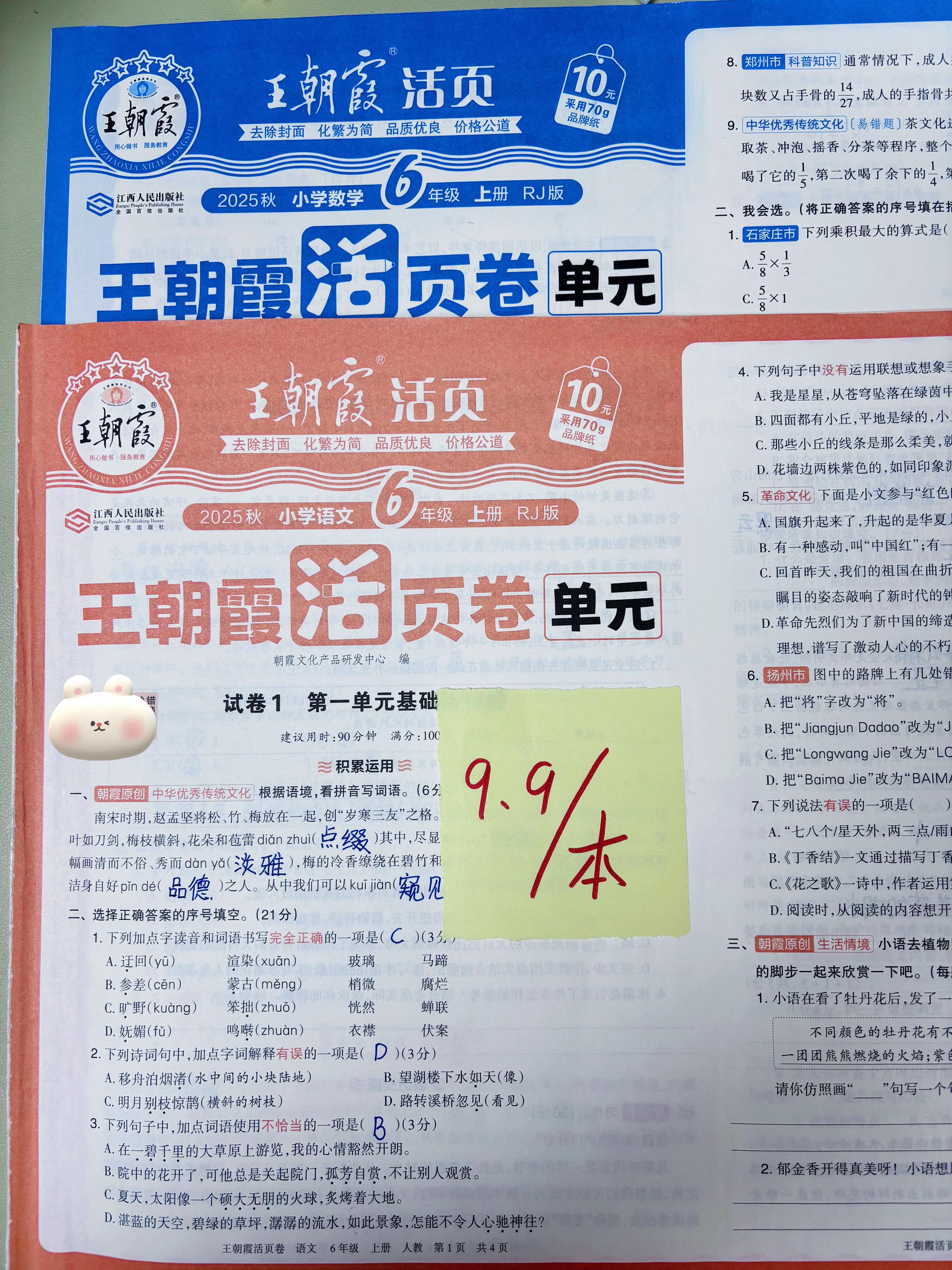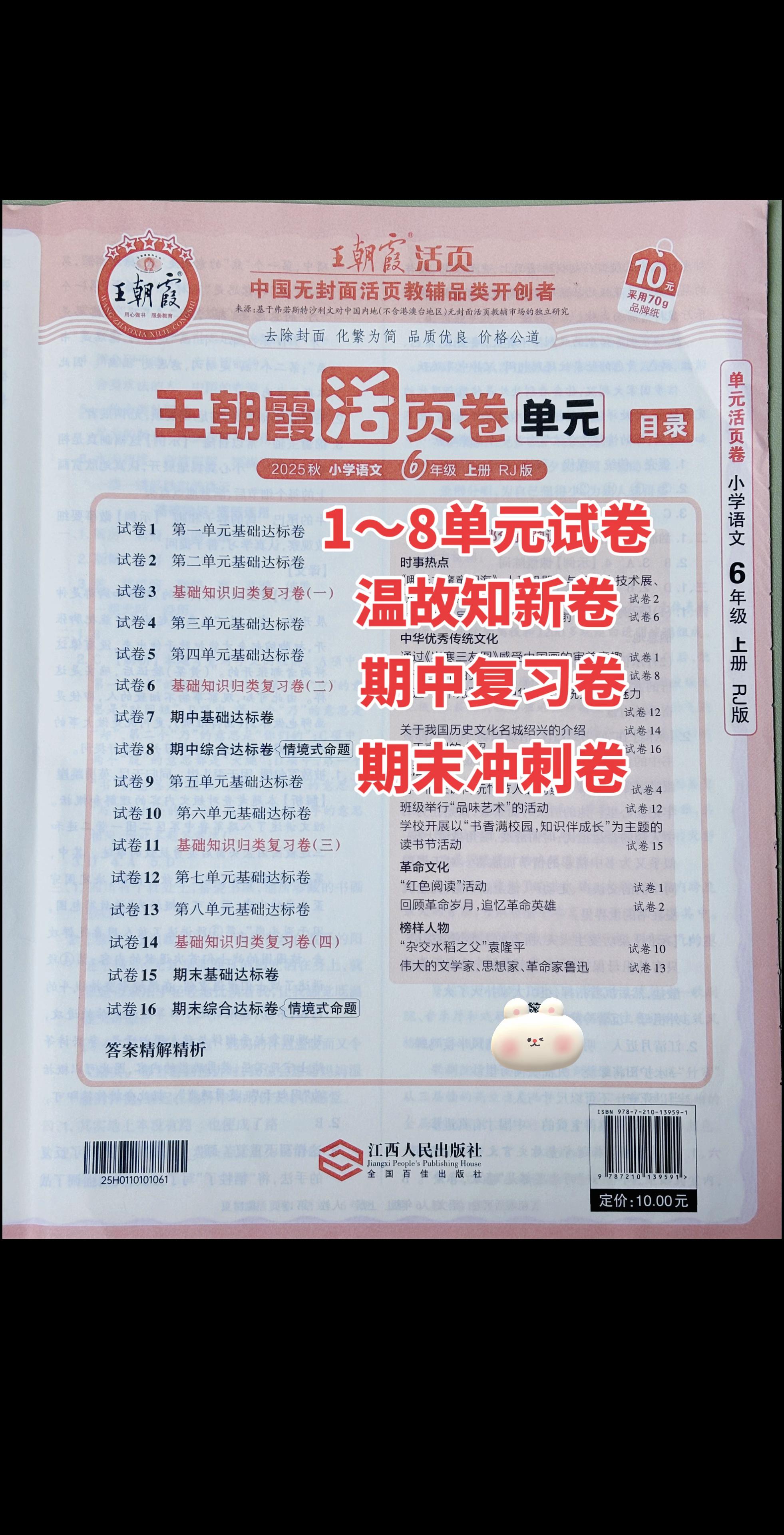 王朝霞活页单元卷 2025秋季新版,一周一测 及时查漏补缺 ,巩固基础,夯实1~8单元知识考点,做到全面提升,国庆 假期 可以让孩子在家练一练