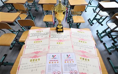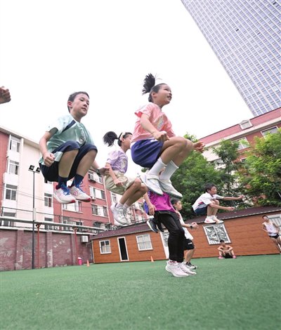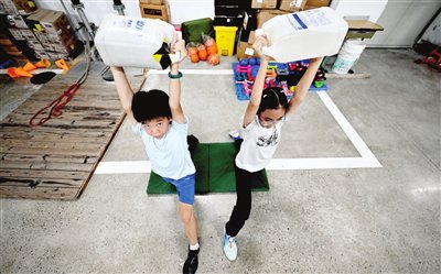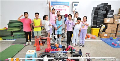 在天津市南开区五马路小学(以下简称五马路小学),有一支“拼”出来的田径队。2020年,队伍在质疑声中成立。没有标准跑道,他们就把地下停车场、校园小路当作训练场;没有训练臂力的哑铃,他们就用洗衣液空桶灌水替代;没有推举的杠铃,他们就用装修剩下的PVC(聚氯乙烯)管绑上矿泉水瓶,两边的重量还得一样;没有训练用的阻力绳,他们就用家长送来的旧轮胎和松紧带替代;没有训练跳跃的垫子,他们就用家长提供的塑料凳……五马路小学田径队就在教练和家长们的“拼拼凑凑”中茁壮成长起来。就是在这样的条件下,一群孩子用五年时间,跑出了一条不平凡的体育之路。
