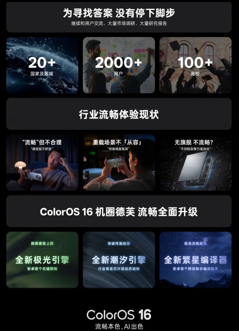 大致看了一下,这次ColorOS 16主打一个丝滑!我看官方演示的那个全新动效,应用切换、返回桌面都跟德芙一样顺滑,几乎看不到掉帧。