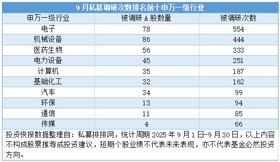 9月私募机构调研13个申万一级行业不下50次,其中更有6个行业被私募机构调研突破100次大关。