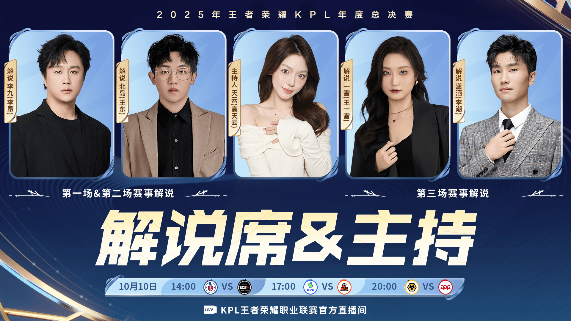 解说席&主持人:李九(李昂)、北岛(王东)、天云(高天云)、一雪(王一雪)、潇洒(李潮)