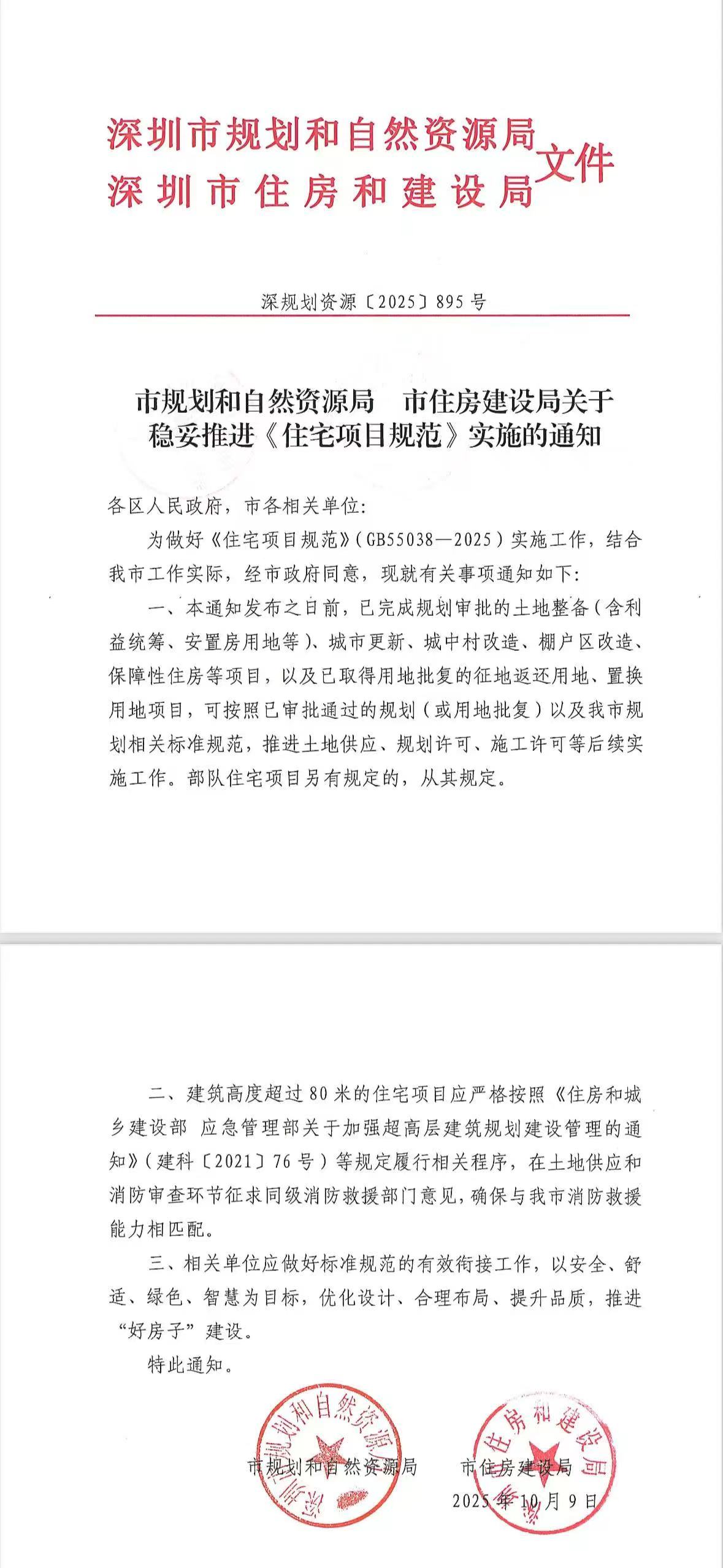 10月9日,深圳两部门发布关于稳妥推进《住宅项目规范》实施的通知(以下简称《通知》)。