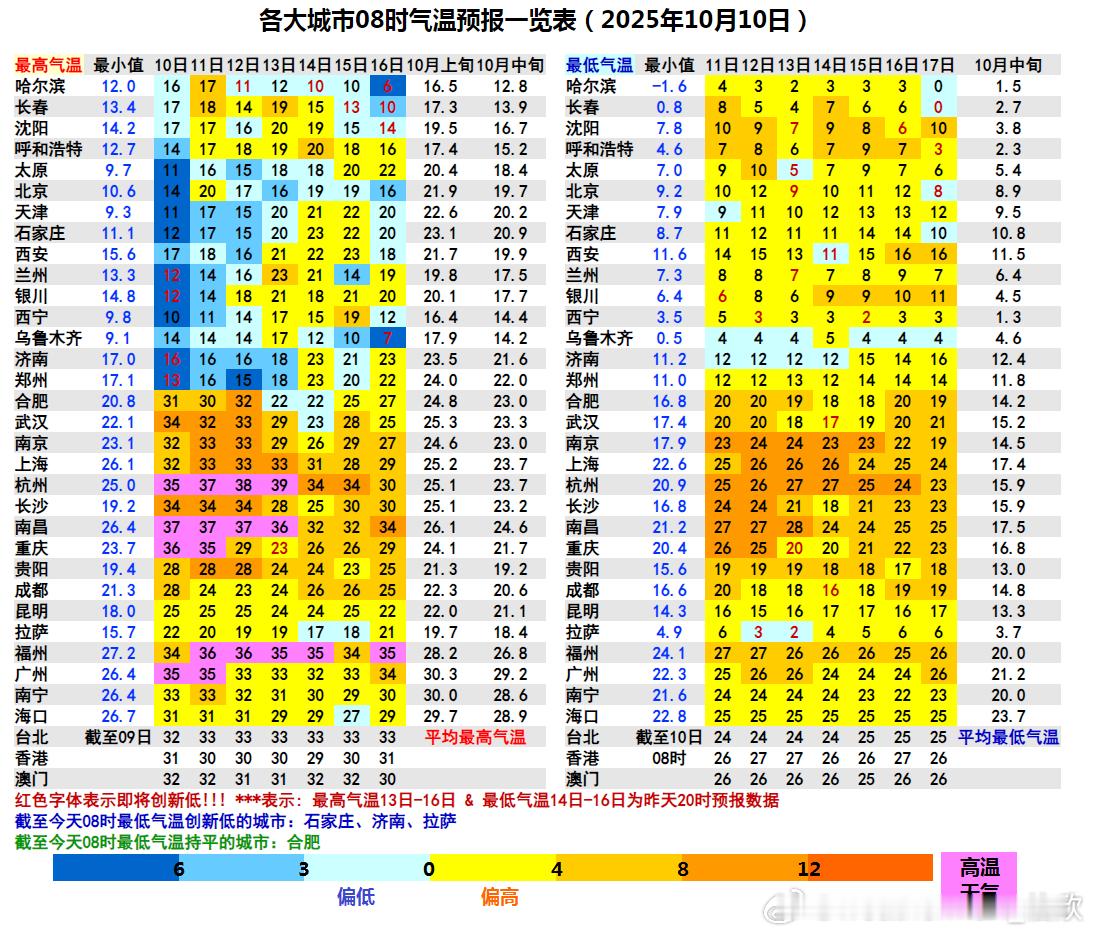 气温冷出11月水平 昨天京津冀一带最高气温,比常年10月上旬偏低了10℃以上,冷如11月。但重庆湖南江西等地,偏高了10℃以上,热如7-8月。今天这样错乱反常的气温分布还会继续。因为北方冷高压控场,南方有副热带高压维持,导致冷热反差很大。 ​​​