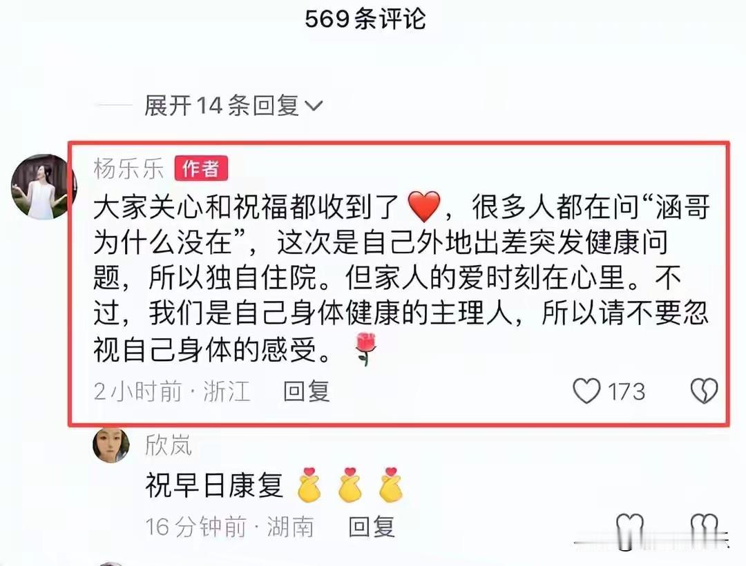杨乐乐阑尾炎发作一个人住院治疗,汪涵这时候在干嘛? 现在交通这么便利,想要看望老婆很快就可以陪在身边啊!虽然杨乐乐解释道是因为自己一个人在外地拍摄,但突然生病住院身边总需要一个亲人陪护。 真是恩爱夫妻汪涵这时候就应该推开工作安排赶紧来陪伴妻子,如果实在抽不开身也可以委托母亲或者丈母娘来照顾杨乐乐吧? 对老婆这样不管不顾的操作,还真是让人猜不透啊?