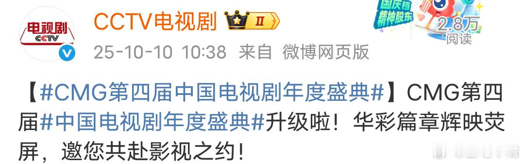CMG第四届中国电视剧年度盛典好奇在哪方面升级?升级奖杯?还是升级获奖数量?[允悲][doge]敬请期待第四届中国电视剧年度盛典!