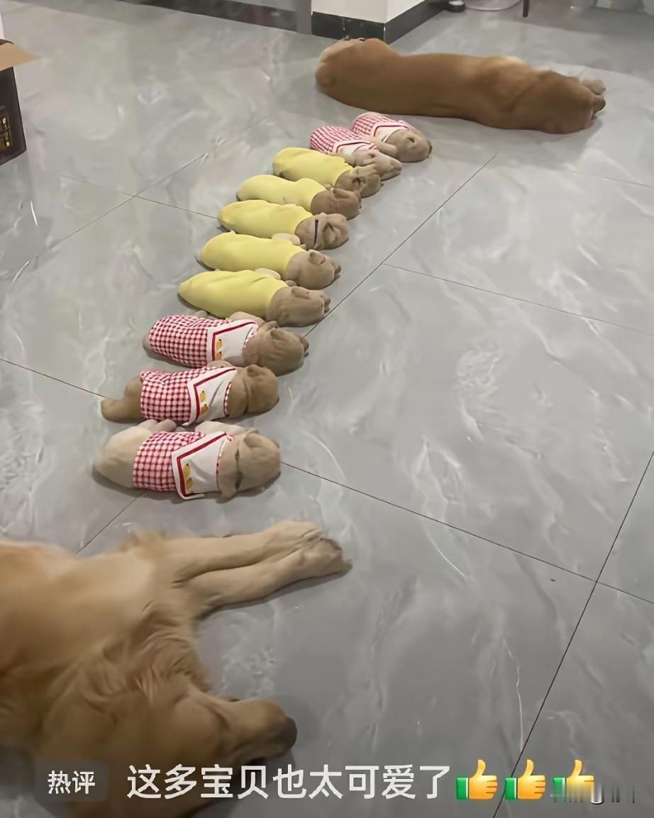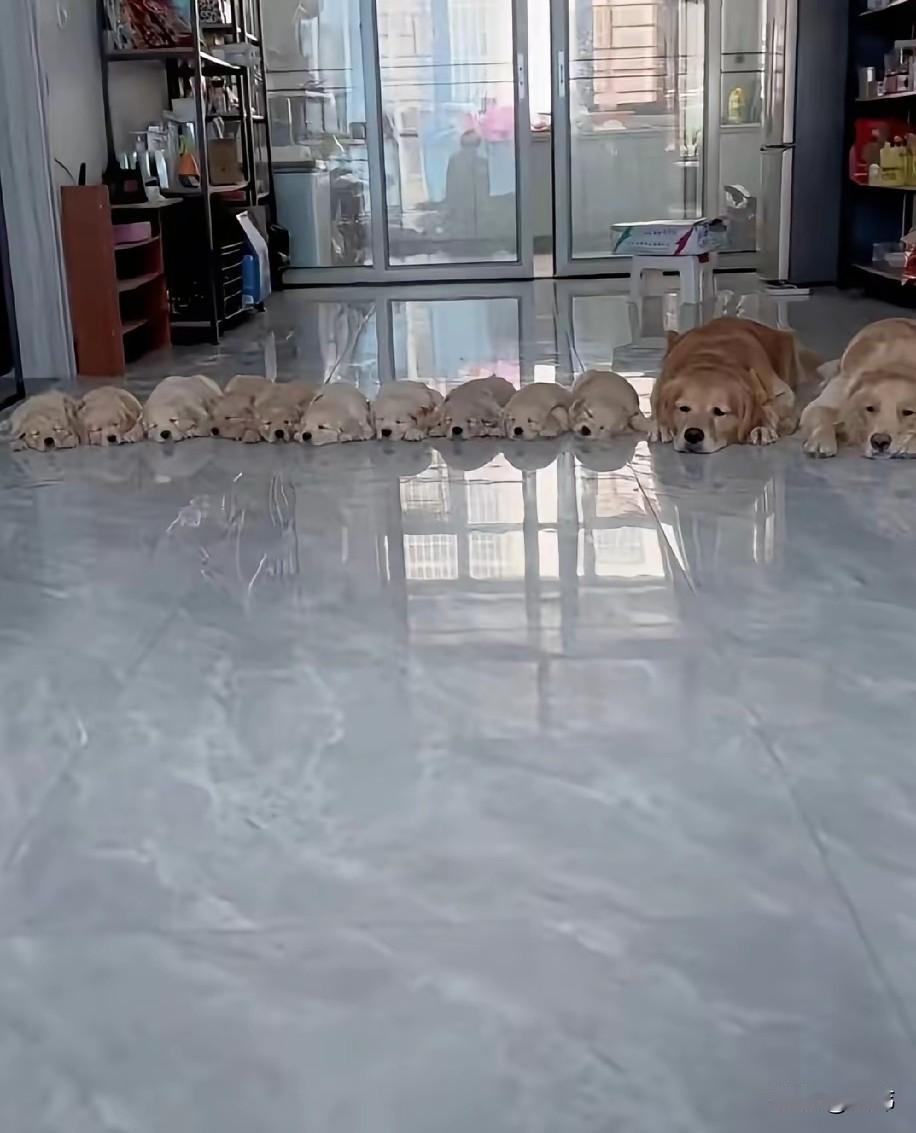 太壮观了吧!一位小姐姐晒出家里养的狗狗军团,实在是太令人羡慕了,她养了一公一母两只大金毛,结婚后来它们生了十只小奶狗。 这下家里可就热闹坏了,每天两只大狗带着十只小不点整整齐齐拍成一排一起吃饭饭,别提多壮观了,吃完后它们又整齐的排成一排睡大觉,实在是太可爱了。很多网友都非常羡慕她有这么多只狗狗,可是要知道照顾它们可并不容易啊!而且开销也特别大,毕竟光光狗粮就是一大笔费用。