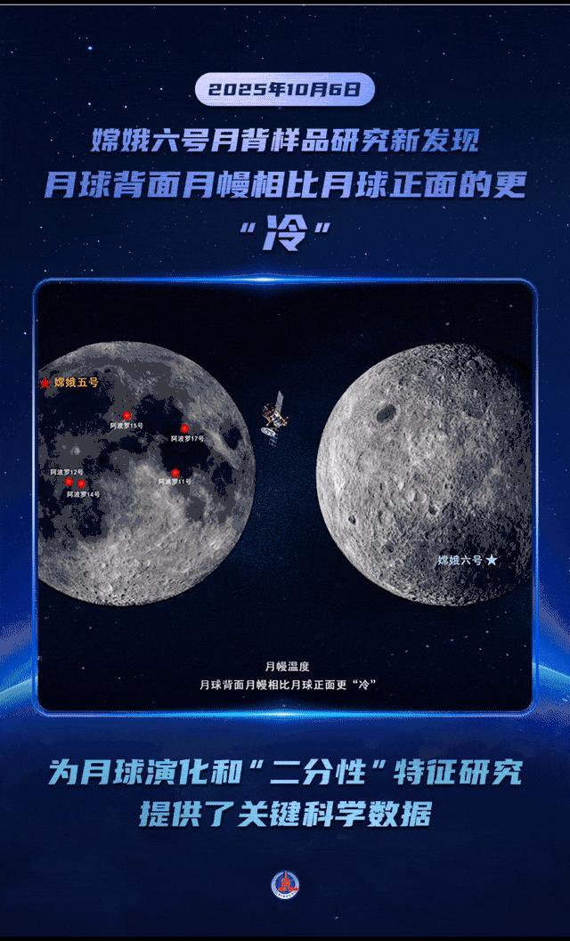 中国在月球又有大发现,当年美国人给的月壤,果然有问题。借着中秋这一天,中国航天局公开了一份喜人发现。通过嫦娥六号采集的月背月壤,我国科研人员又有了大发现。而也是这一次的发现,在为人类认知月球掀开新篇章的同时,也让半个世纪前美国交给中国的那1克月壤,再度成为焦点。 1978年的时候,美国派布热津斯基访华,带来了卡特总统的礼物:一块1克重的月球岩石和一面去过月球的中国国旗。就这1克石头,当时直接送到了贵阳的中科院地球化学研究所,43岁的欧阳自远带着近百名专家围着它打转,愣是把这块来自阿波罗17号采样点的石头研究透了,不仅确认了它的来源,连采集地有没有阳光照射都搞清楚了,两年里还发表了12篇论文。 那时候咱们没能力自己去月球挖土,这1克月壤就是研究月球的全部底气,可现在回头看,问题恰恰就出在这“样本来源”上。 美国当年通过阿波罗系列任务带回来381.7千克月壤,但细看采样地点就明白门道了,阿波罗11号在宁静之海,12号在风暴海,14号在哥白尼陨石坑附近,15号到17号也全落在月球正面的平原或高地,压根没沾过月球背面的边。 而嫦娥六号不一样,它直接着陆在月球背面的南极-艾特肯盆地,这可是人类第一次从月背核心区域带样品回来,光是这采样地点的独特性,就注定能挖出美国当年没发现的秘密。 这次公布的成果里,最关键的发现就是月球背面的月幔比正面更 “冷”。科学家拿着嫦娥六号带回来的玄武岩样品,分析了里面的单斜辉石、斜长石这些矿物成分,还用了三种不同的温压计加上岩石学模型模拟,四种方法算出来的结果都一样:这些玄武岩的结晶温度大概 1100摄氏度,比嫦娥五号从月球正面带回来的样品低了整整100度。 更深入测算后发现,月球背面月幔的潜能温度约1400摄氏度,比正面的1500摄氏度也低了100度,后来用卫星遥感数据在更大范围验证,结果也差不多,背面就是比正面低70度左右。 这可不是个小发现,月球正面和背面的差异早就被叫做“二分性”,比如正面30%以上都是平坦的月海,背面却只有1%到2%,正面放射性元素多,背面就少,地形更是一个平坦一个全是沟壑。但为啥会有这差异,一直没找到关键证据,现在月幔温度差的发现算是补上了重要一环。 更有意思的是,之前研究嫦娥六号月壤还发现了新东西,从5克样品里分出的岩屑中,找到了一种新型的苏长岩,还是42.5亿年前撞击形成的熔岩,这比美国阿波罗样品里的苏长岩成分差别很大。 要知道,南极-艾特肯盆地是月球上最大的陨石坑,形成时间一直没个准数,嫦娥六号的样品直接把时间定在了42.5亿年前,这要是靠当年美国那点正面样品,根本不可能做到。 说起来,当年美国给1克月壤,可能也没想到中国有一天能自己去月背挖土,还挖出这么多颠覆性发现。欧阳自远当年研究那1克样品的时候,肯定也盼着咱们能有自己的月球样品,现在不仅有了,还一下拿到了别人没见过的“稀罕货”。 这哪儿是简单的发现啊,分明是用自己的技术,把当年没看清的月球真相,一点点给补全了。当年那1克月壤没说错什么,但确实藏着太多没说的秘密,现在嫦娥六号一出手,这些秘密总算藏不住了。