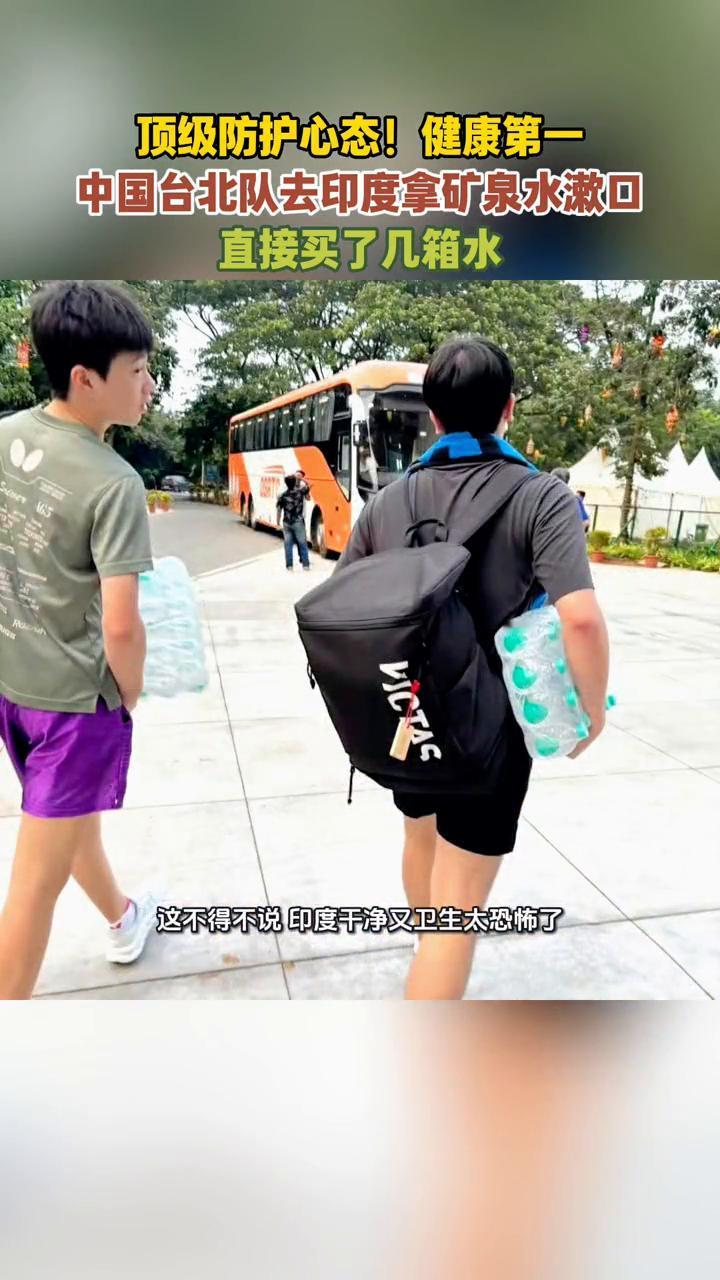 中国台北队去印度拿矿泉水漱口,顶级防护心态,健康第一。 闻印色变,这不是什么夸张用语而是真实事情,来自中国台北队运动防护员的真实分享。此次亚锦赛团体赛印度之旅,虽然酒店水龙头和莲蓬头的水是透明的,但自己还是拿矿泉水漱口。两个最壮的帮忙扛水回酒店,不得不说印度干净又卫生太恐怖了,真的怕中招万一上吐下泻那就完蛋了。 乒乓球亚锦赛团体赛将于10月11日至15日在印度的布巴内斯瓦尔举行,祝国平顺利完赛。