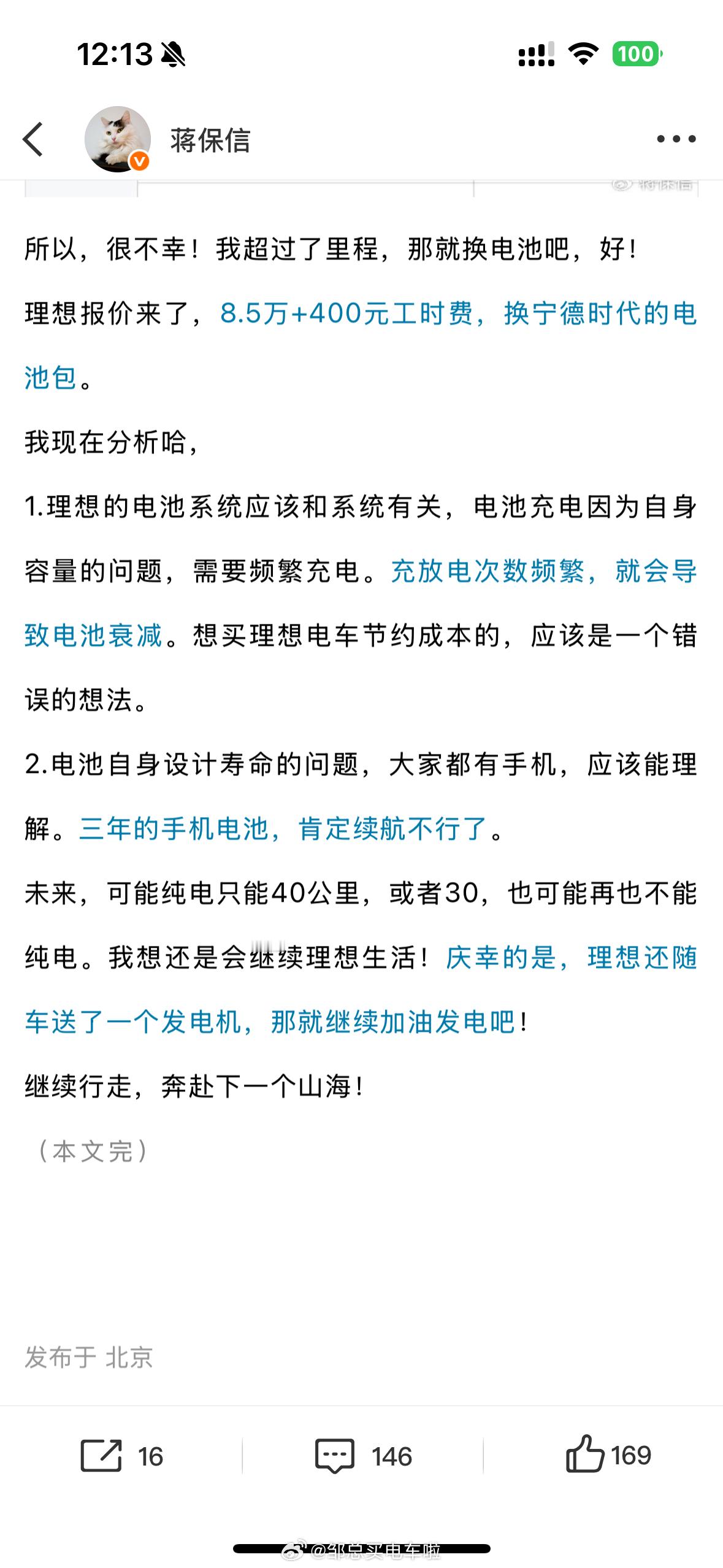 好在结果他想通了,听了我的,晚上转头定了台电池可充可换的纯电车,一家人开开心心。所以我瞬间感觉,真的买错车,比买贵车更惨!
