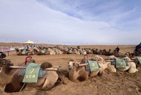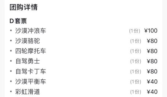 中卫金沙海 十一假期临时决定到中卫游玩,沙坡头人流量太大,想找个人少点的地方玩沙子,最后选了金沙海景区! 自驾前往金沙海的路上,路边有很多人买滑沙板,铲子等等,我买了个铲子和桶,可小刀,如果买了景区套票,里面是有可以使用的滑沙板,不用自己购买哦! 最后我们选择了图三的套票,进入景区第我们就停在门口的停车场,在那玩了一会,才发现要开车继续前进,游玩项目在里面哈哈哈哈哈哈,游玩项目那还有一个停车场,可以把车停在游玩项目那更方便。 第一个项目我首先选择了骑骆驼,这个项目在最里面,大约有十五分钟左右,骆驼蛮大的,也很温顺,体验感拉满!骑骆驼旁边就是自驾勇士,安全员很温柔,会告诉你踩油门松油门,基本全程踩上油门,体验感也很好,也很刺激!我开车不太熟练也可以驾驶,方向盘要抓好!安全第一!再旁边是四轮摩托和自驾卡丁车,自驾卡丁车的大叔有点凶[笑哭]我也有点紧张,方向盘初始状态不是正的,我没搞对,大家注意安全。四轮摩托不需要自己驾驶,安全员会踩油门把握方向,你只要抓好就行,这个好刺激,中间有个下坡我默默闭上了眼睛。[汗]沙漠冲浪车很有意思了!一定系好安全带!一个车上坐的人也多,很有氛围感。 有个缺点是滑沙没有电梯哈哈哈哈,沙坡头我看是滑下去可以坐电梯上来,这里只能自己再走上去。价格上如果想便宜,可以多看几个平台。下次希望去中卫时避开节假日,去沙坡头再感受一下!沙漠 总要看一次沙漠吧 金沙海