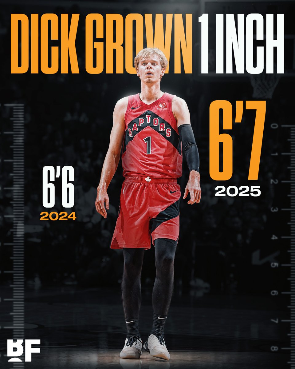 其写道:格雷迪-迪克自上个赛季以来长高了1英寸。目前他的身高登记为6英尺7英寸(约2.01m)♂