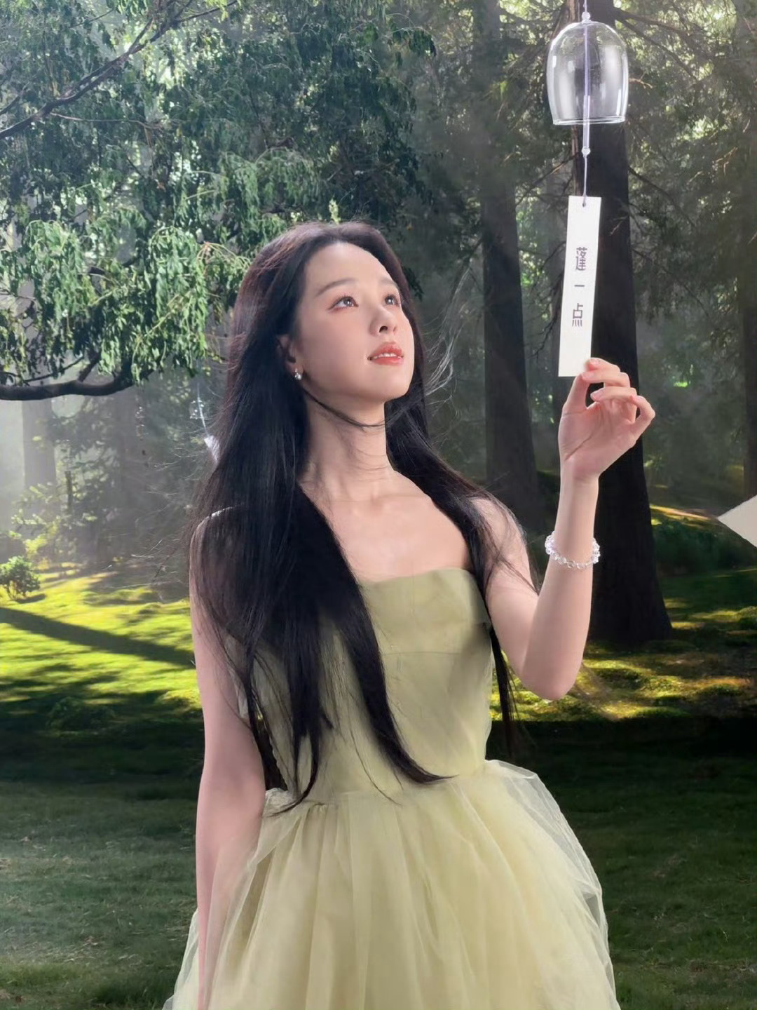 这条绿裙子真的太美了!陈都灵好像森林里的仙子~