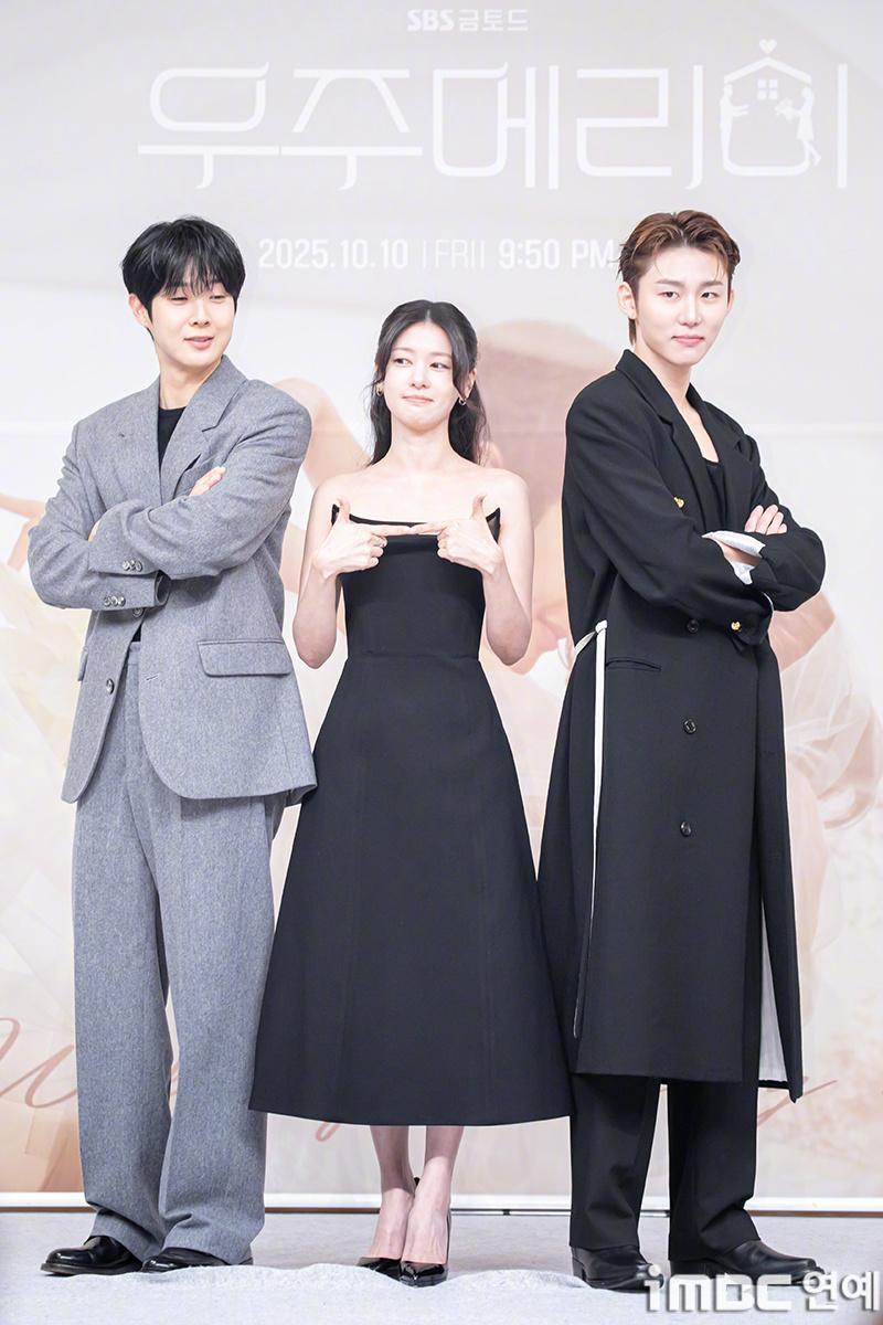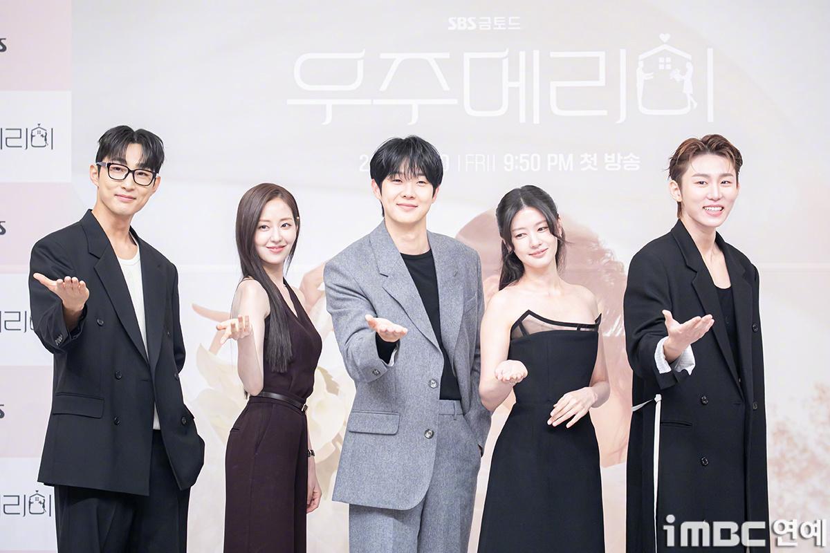崔宇植[超话]郑素敏[超话]裴奈拏[超话]申瑟琪徐范俊[超话] 出席SBS新金土剧宇宙Marry Me 制作发布会,今晚首播。