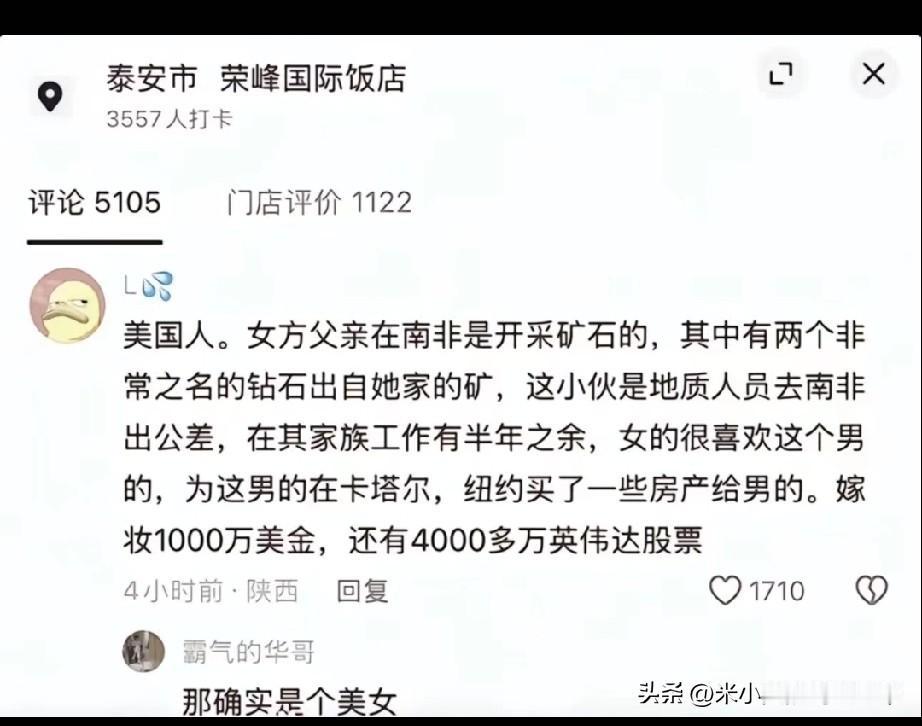 如果你是这个男主,你会娶这个新娘吗! 山东泰安一场婚礼炸翻全网!小伙娶了南非“钻石千金”,嫁妆甩来1000万美金+4000多万英伟达股票,卡塔尔、纽约还备好了房产。中式婚礼阵仗十足,网友酸成柠檬精:“这哪是结婚,是直接躺赢啊!” 有人喊“换我我也嫁,爱情面包两手抓”,有人怼“为了钱结婚,感情能纯粹吗?” 这波跨国婚姻的“钞能力”操作,你觉得是真爱无敌,还是金钱至上的现实童话?