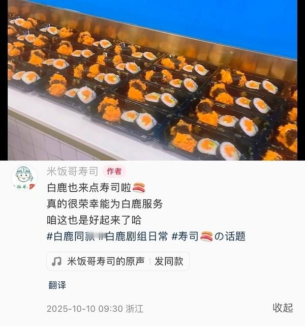 她特意约了横店相熟的湾餐厅,来象山给粉丝做好吃的。还准备了很多逆应援的食物,餐具都是定做的,这份对粉丝的心意真难得。说真的白鹿真的当明星真的很好。有事业心,且很会营业。还宠粉。感觉追星这种会很开心,是真的把粉丝当作家人去用心对待的[抱一抱][抱一抱][抱一抱]