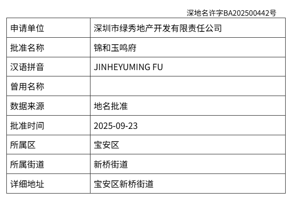 绿城今年8月竞得的宝安沙井住宅项目,终于有名字——锦和玉鸣府。