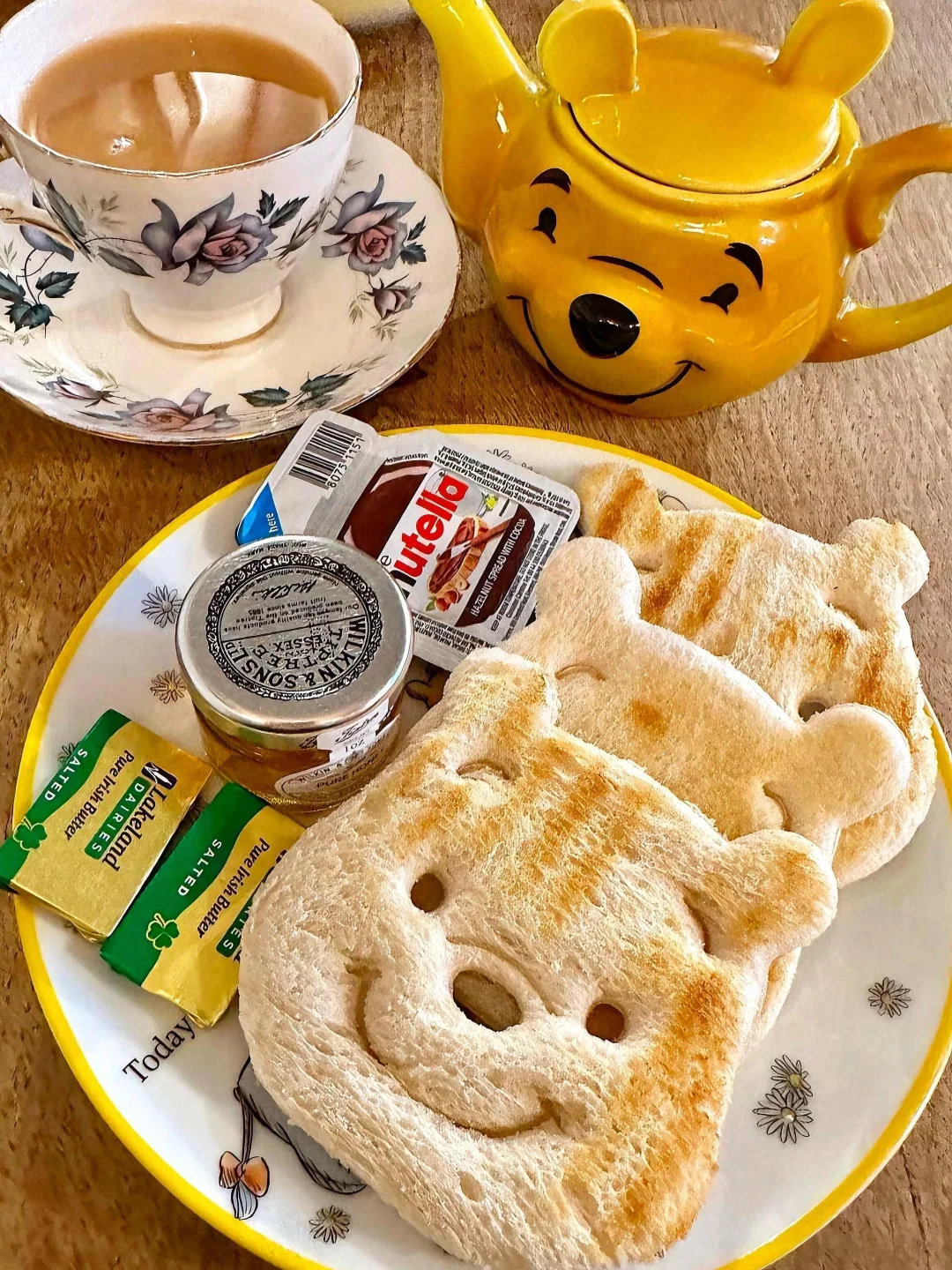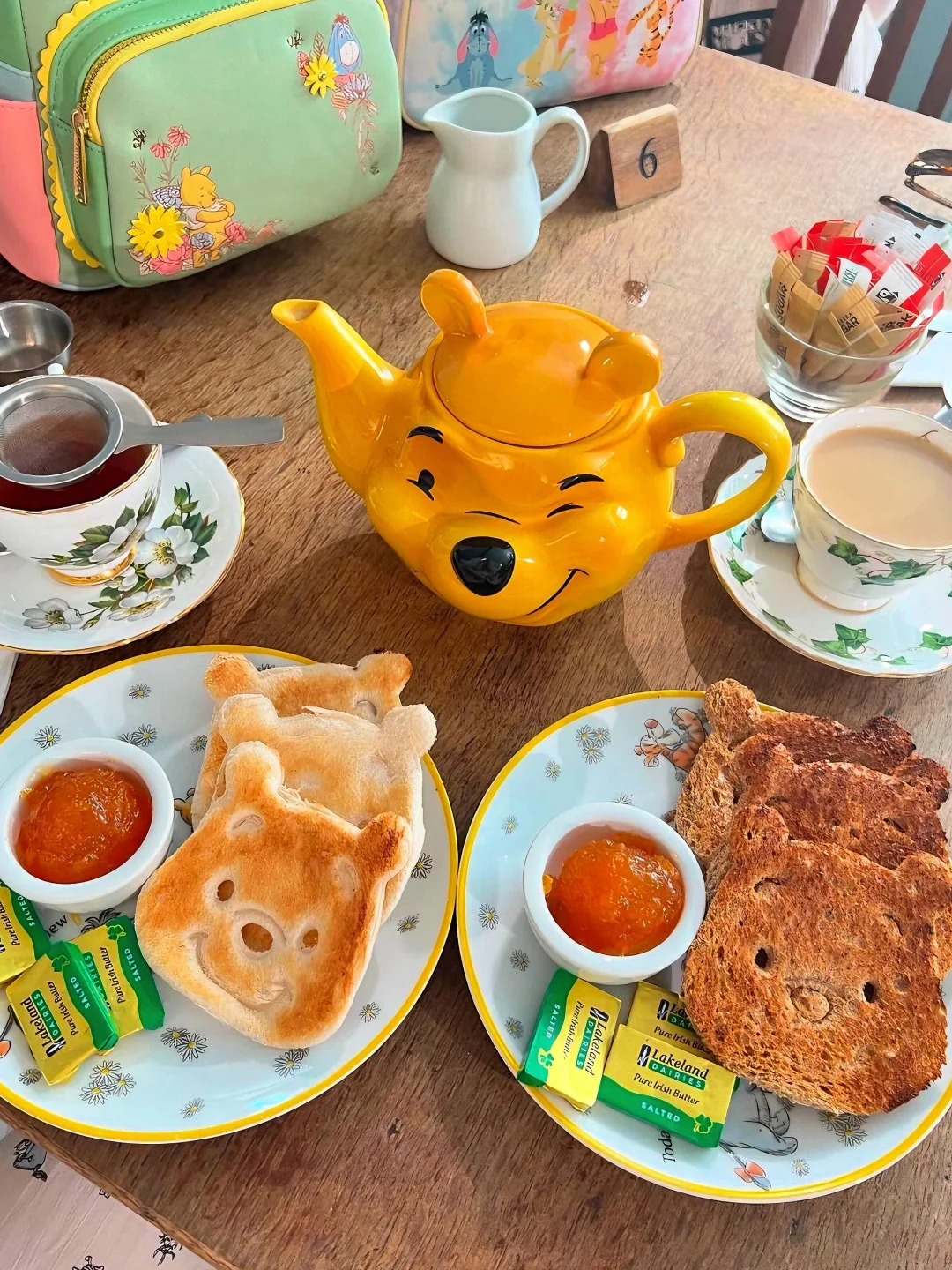 商店内有一个可爱的咖啡角落,有传统的英式下午茶和美味的糕点。选择一个维尼主题的“蜜蜂蜜茶”,再配上维尼风格的甜品,可爱到根本舍不得吃😭