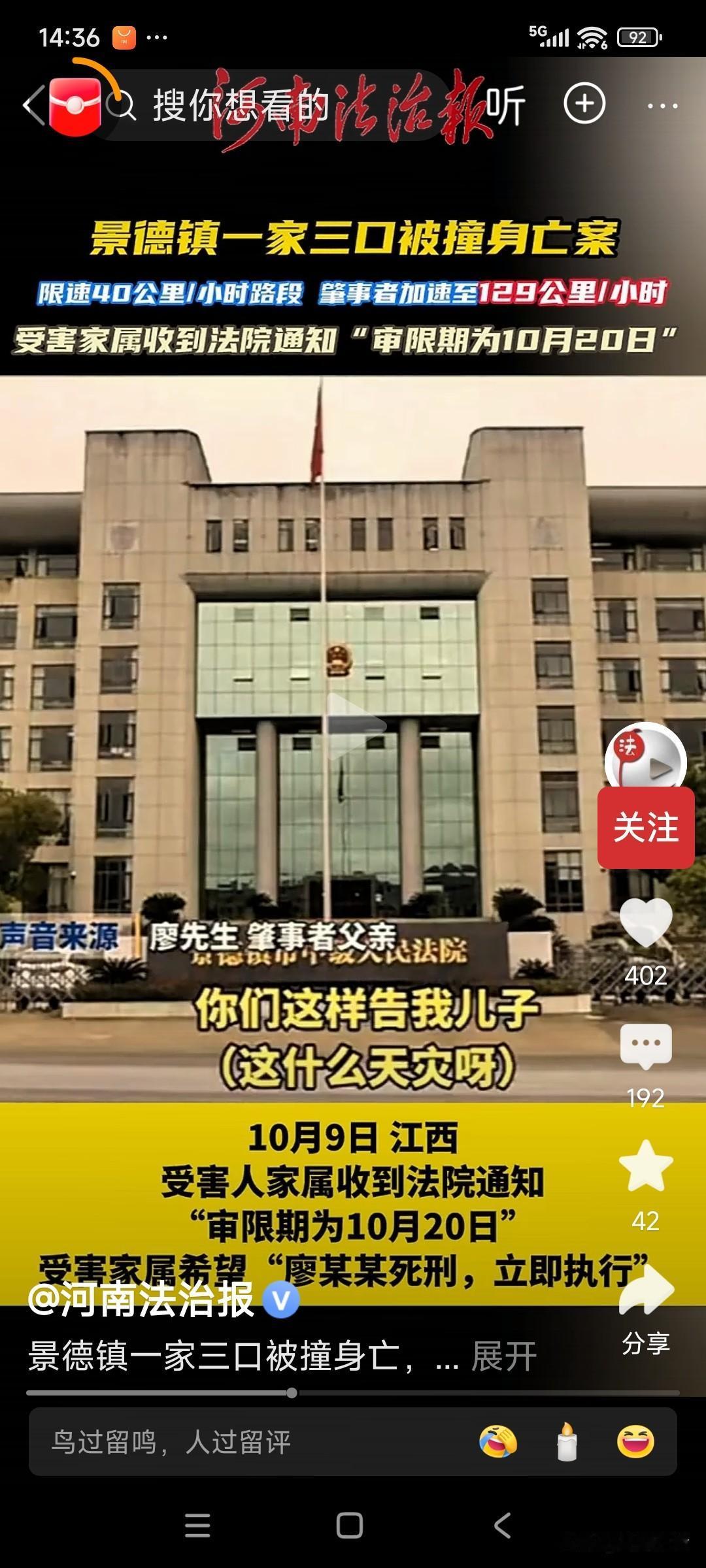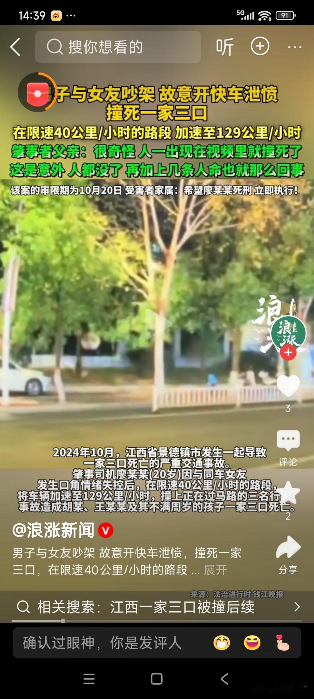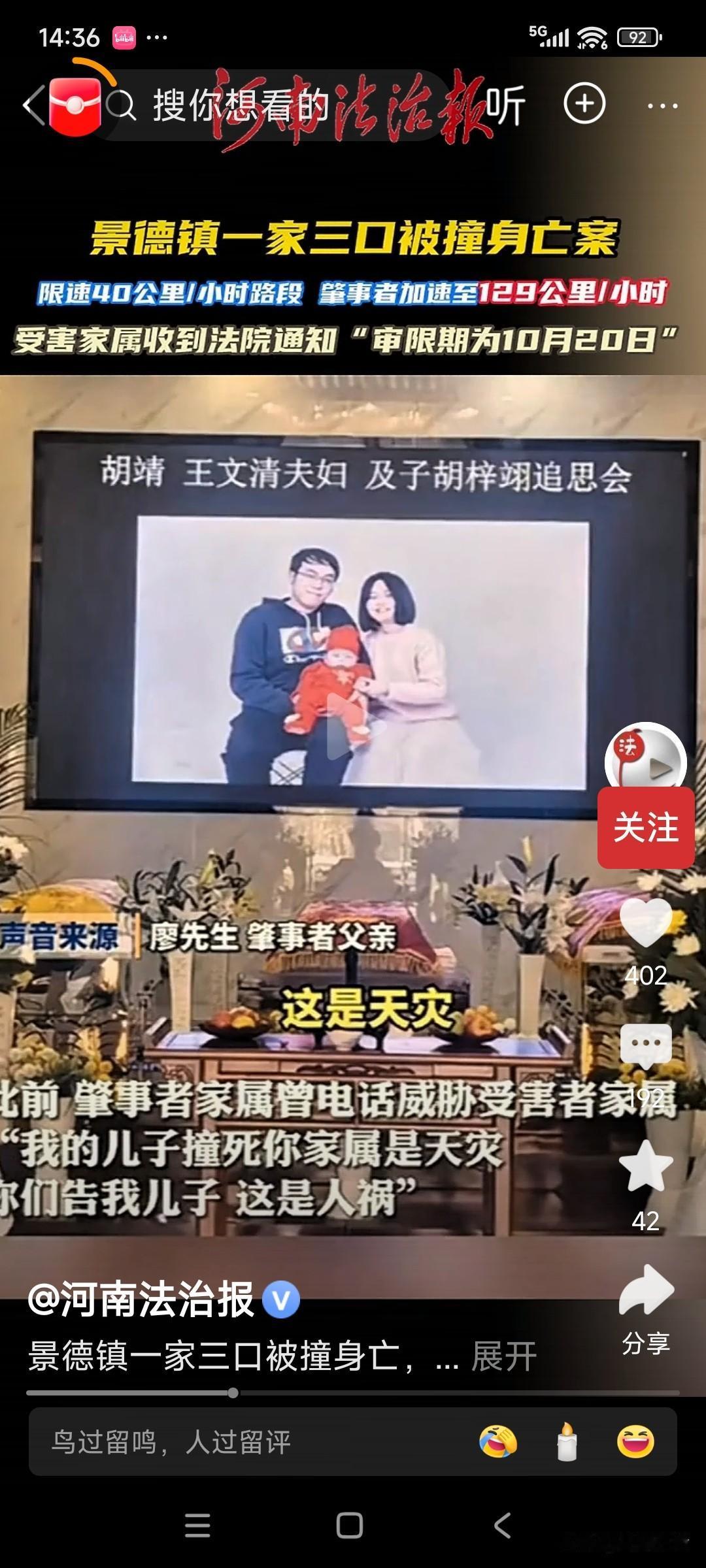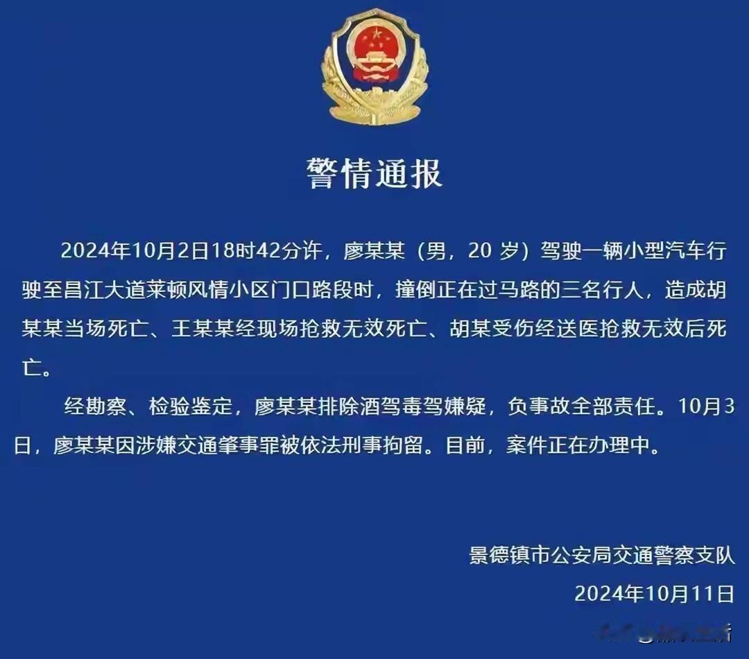 只活了358天的小孙子,照片贴满墙!一家三口的衣服整整齐齐,摆在床上!80万,怎么能弥补?景德镇廖某,在限速40的闹市区,飙到129迈,撞倒了一家三口啊,都没了! 出事后,20岁廖某,把自己的女友从副驾接下来,只是看了自己的车,点燃了一支烟, 根本没有去管受伤的人,还指着宝宝的头,打电话,谈笑风生, 这,哪个奶奶受得了? 廖某的父亲,更是说:当初出事是“天/灾”,没办法, 你们要告我们孩子,就是“人/祸”, 并拿出80万,想私了, 胡女士说,儿子,媳妇,两边都是独生子女,孙子也是单传,怎么可能要钱?又怎么可能让撞死自己儿子的“人”,来给自己养老? 她们不接受所谓的“道歉”,只要惩处! 10.20日,要公开审理了,希望可以得到圆/满的结果!