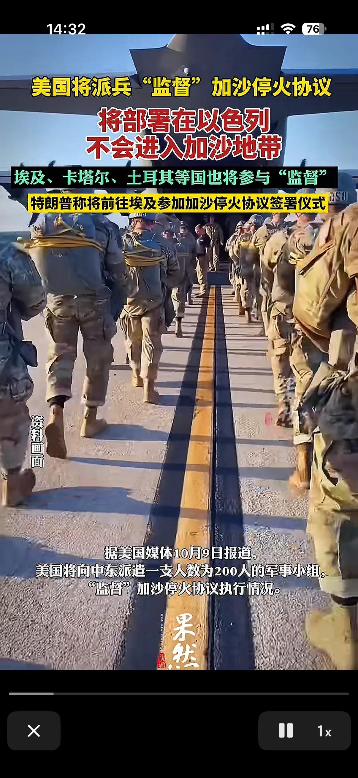 特朗普这回是吸取了美国以前在伊拉克战争的经验教训了,美国在阿富汗和伊拉克派驻军队,结果算是把自己拉入了战争的泥潭了,尤其是伊拉克,算是让美国明白了什么叫鸡肋了,什么是食之无味弃之可惜! 美国这次就是往加沙派驻维和部队,但是坚决不把军队驻扎在加沙地带,而是把军队驻扎在对美国友好的以色列,这可就是进可攻退可守了! 在这次监督以色列和哈马斯停火协议,不单单是美国要派驻军队,就是周边国家,埃及,卡塔尔,土耳其就是前一阵被以色列轰炸过的国家也会派遣军事人员监督停火! 希望加沙地带这次真的能进入停火和平!