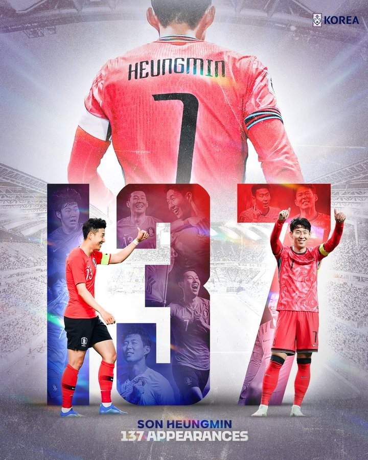根据统计,孙兴慜代表韩国队出战137场A级赛,继续刷新韩国队球员出场纪录。
