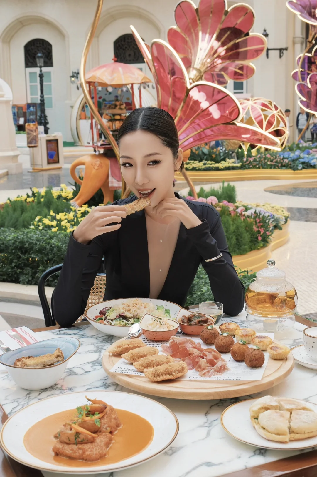 在巨型花朵和旋转楼梯下拍照真的很出片