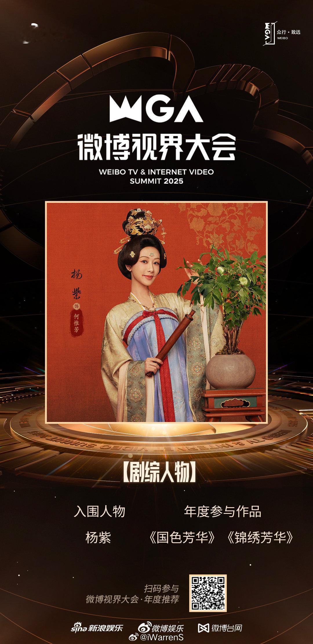 恭喜杨紫国色芳华入围微博视界大会了啊!真的很棒啊![点赞]杨紫开心入围剧综人物 微博视界大会入围片单
