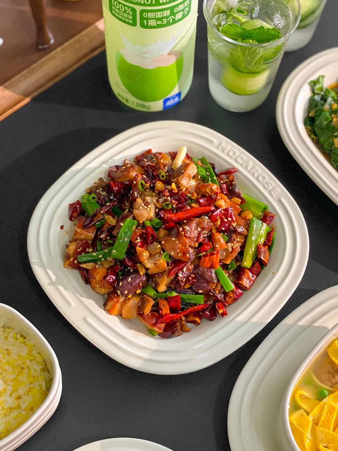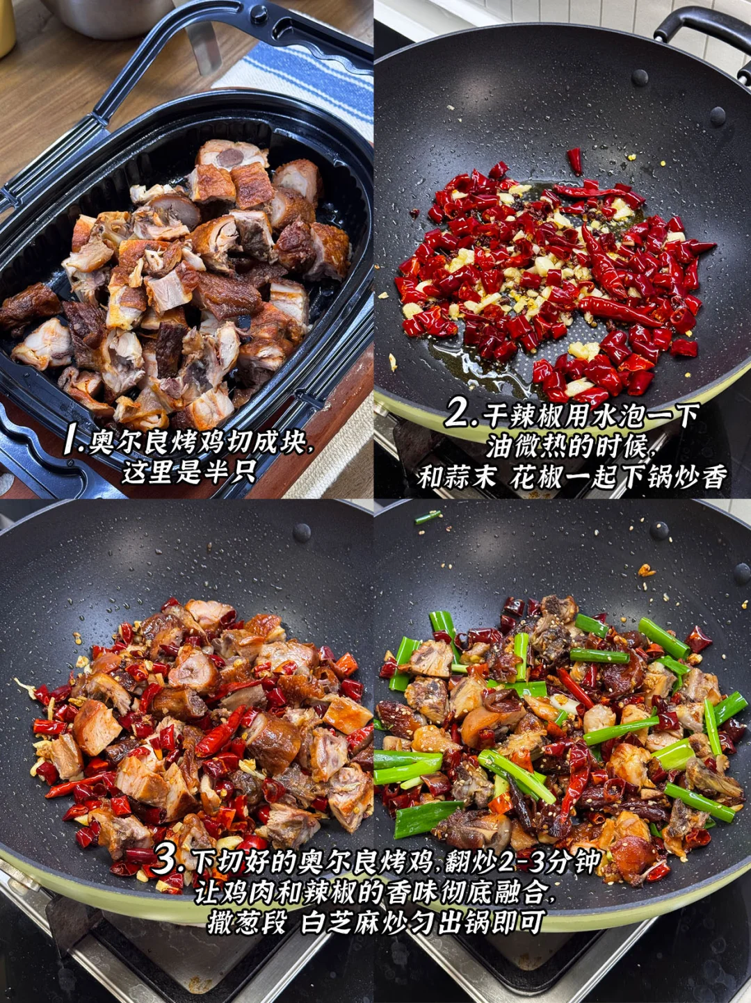 🥘熟食区有超多美食,看着就特别有食欲。带回家一只奥尔良烤鸡,解锁了懒人版辣子鸡🌶️,外焦里嫩的烤鸡和辣椒、芝麻简单翻炒后,每块肉都带着香辣味,混着奥尔良的甜香,配着米饭吃很下饭~。👍这个奥尔良烤鸡挺好的,原料是新鲜鸡肉,腌制的也特别入味,烤好后肉质鲜嫩多汁,用它做辣子鸡是既省事又好吃~