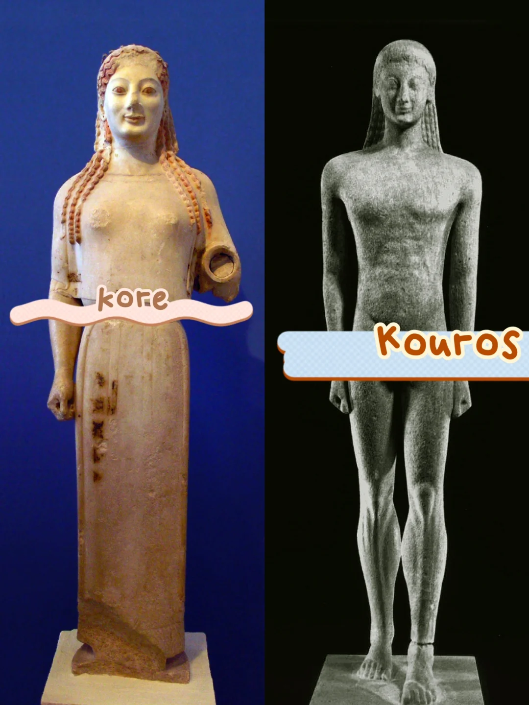 🗿再说雕塑,古风时期,雅典卫城出土的男女雕塑受埃及风格影响,呈现出呆板、僵硬以及迷之微笑,据说,奥特曼的面部便参考了这种微笑。