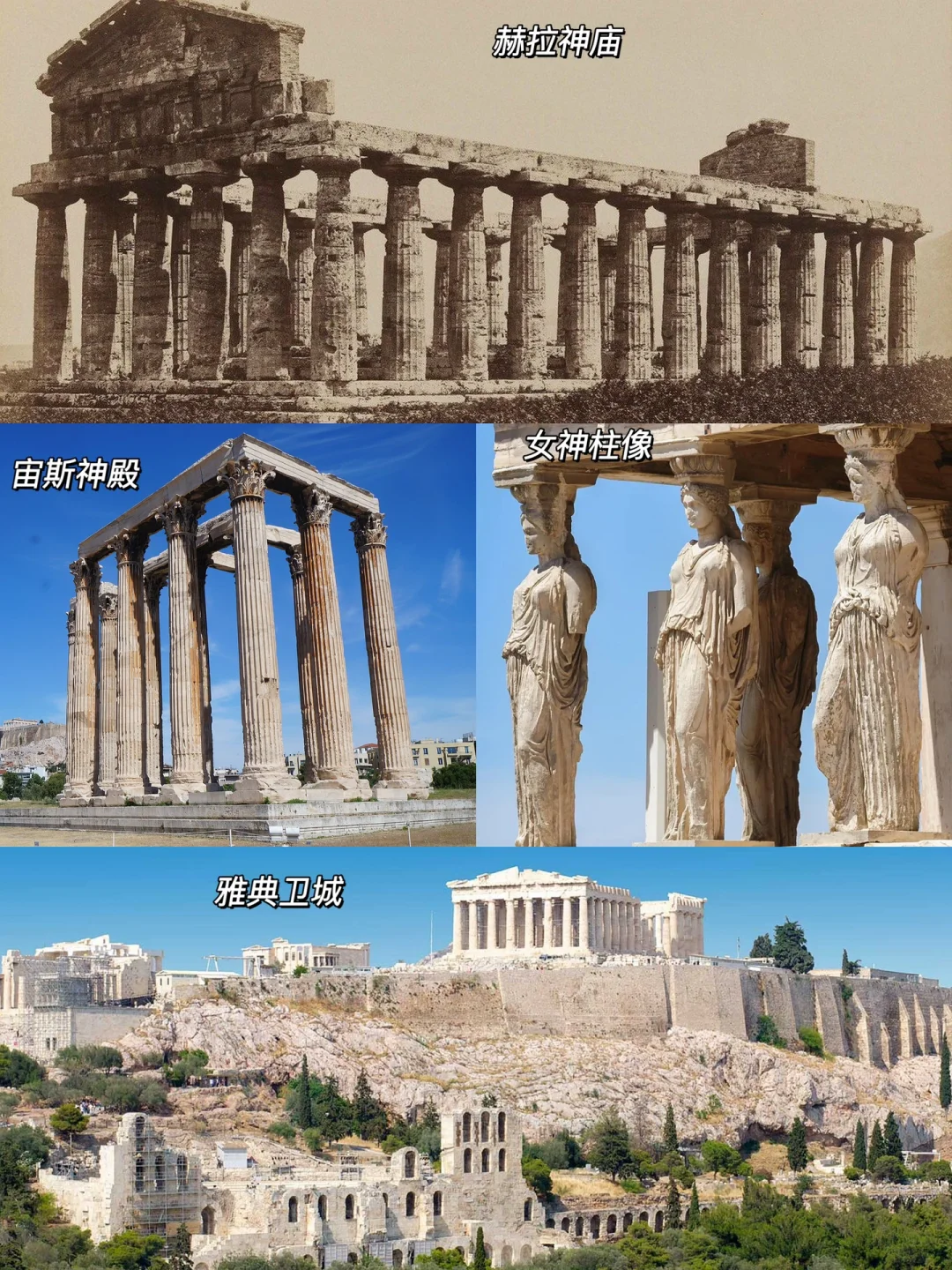 🏛古典时期,古希腊政治经济欣欣向荣,建筑迎来黄金时代,奥林匹亚的宙斯神庙、百都斯的赫拉神庙、雅典卫城建筑群等相继建成。