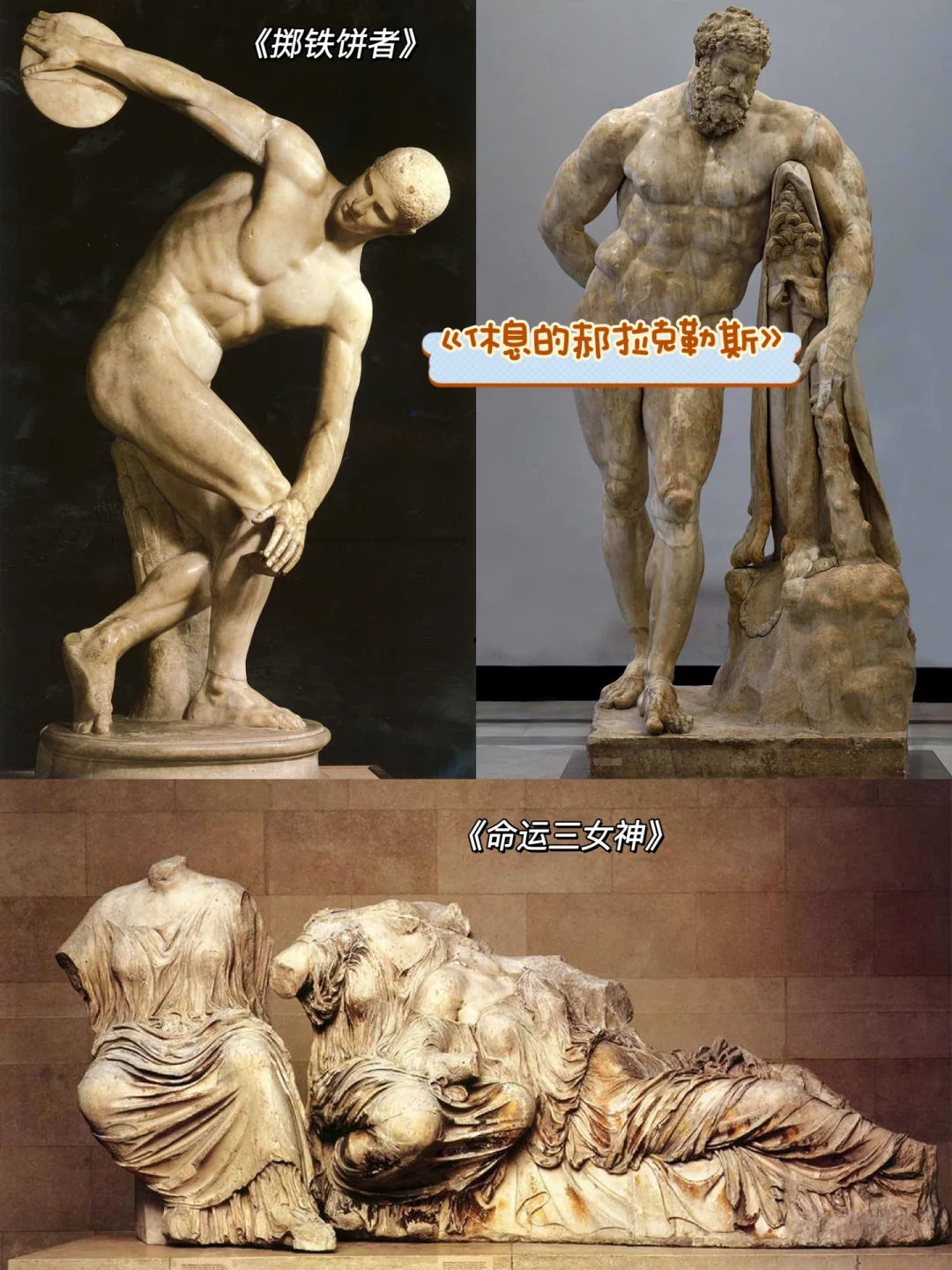 再是四大级雕塑家,菲狄亚斯、波留克列特斯、普拉克西特列斯和利西普斯,分别创作出《命运三女神》、《持矛者》、《阿芙洛狄忒》和《休息的郝拉克勒斯》,为古典主义雕塑盛期画下完美句点。