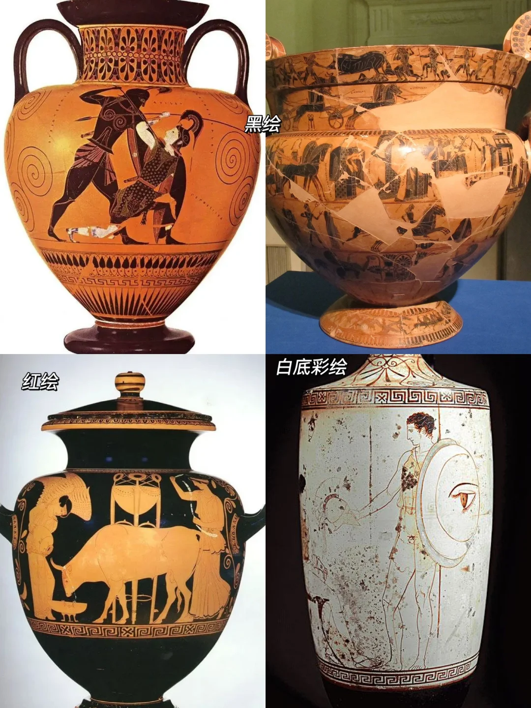 🏺但半世纪后,黑绘、红绘便被白底彩绘所取代,这类创作多以细腻、自然、真实、轻盈的风格示人,其中蕴含的,不仅是古希腊人的审美转变,更是绘画技术的更迭与进步。