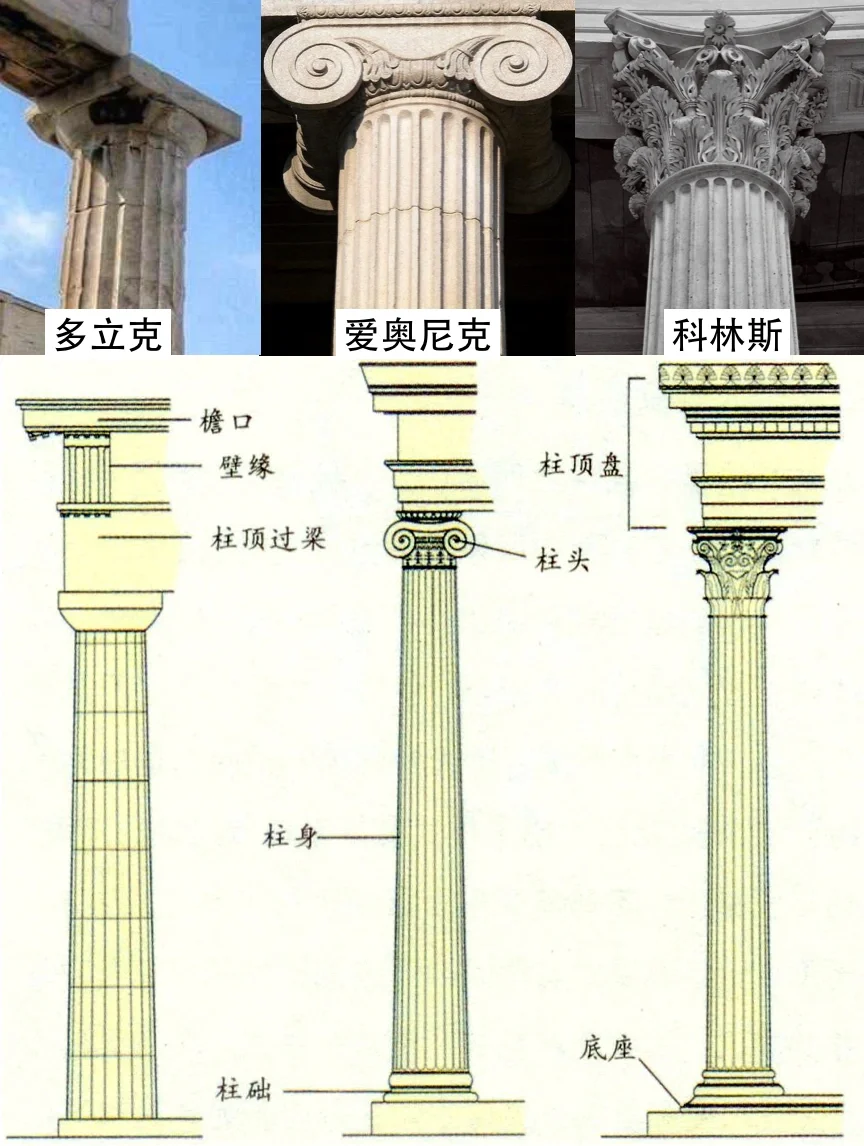 🏛三大柱式也诞生于此,多立克柱无柱基、柱身粗壮、有20条槽纹,柱头为倒圆锥台。