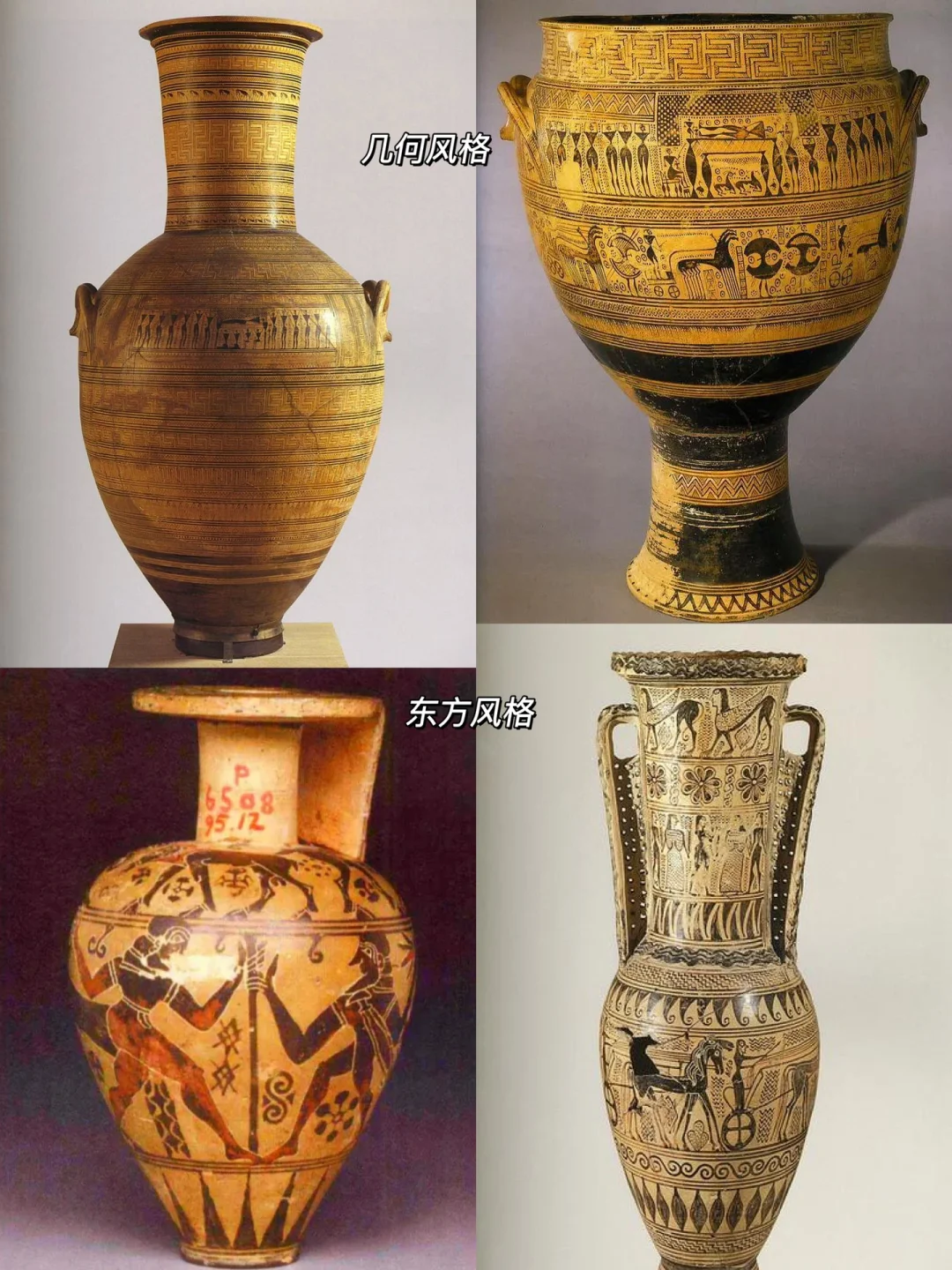 🏺到了古风时期,随着海上贸易的发展,古希腊瓶画受到东方风格影响,几何装饰被奇异的动物、花卉、曲线、神兽所取代。