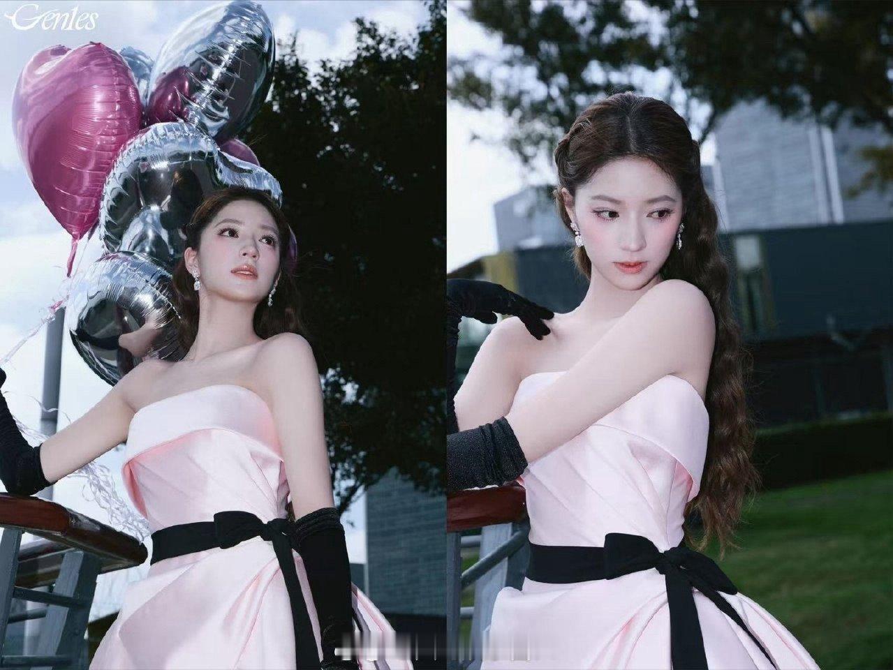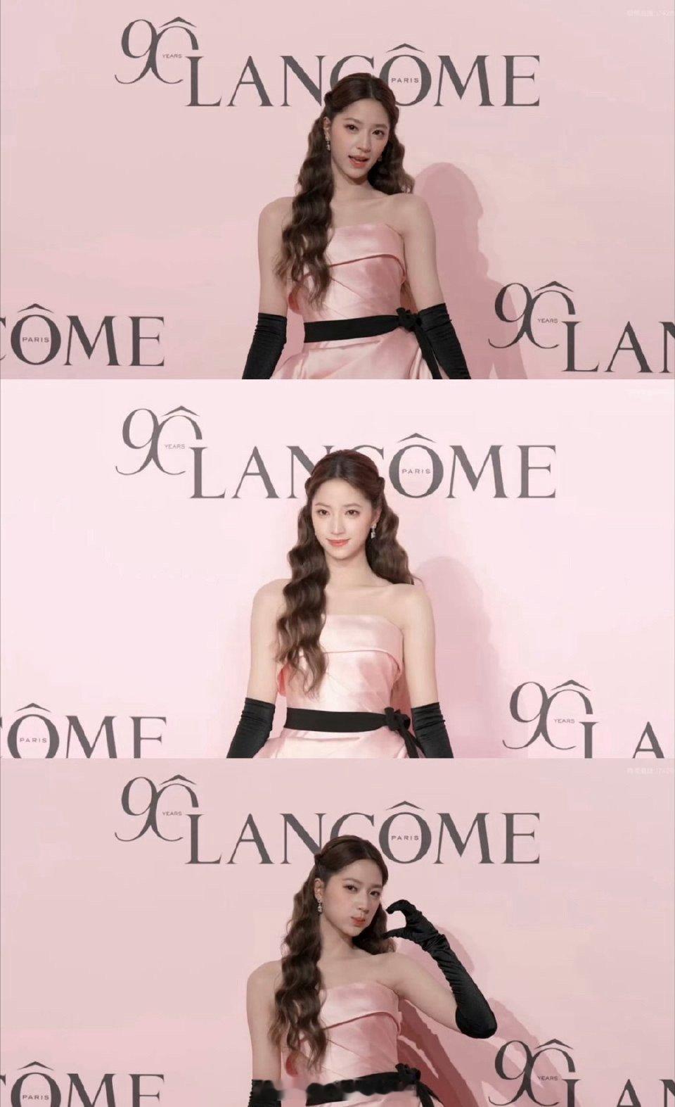 欧阳娣娣看得出她是公主 今日红毯焦点非欧阳娣娣莫属!粉色公主裙勾勒柔美线条,妆容