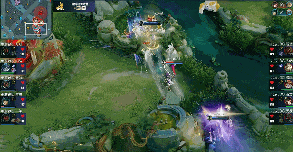 虎扑10月10日讯女娲先秒小乔,关羽逼住JDG射辅位置,绝意向前反打两败俱伤。