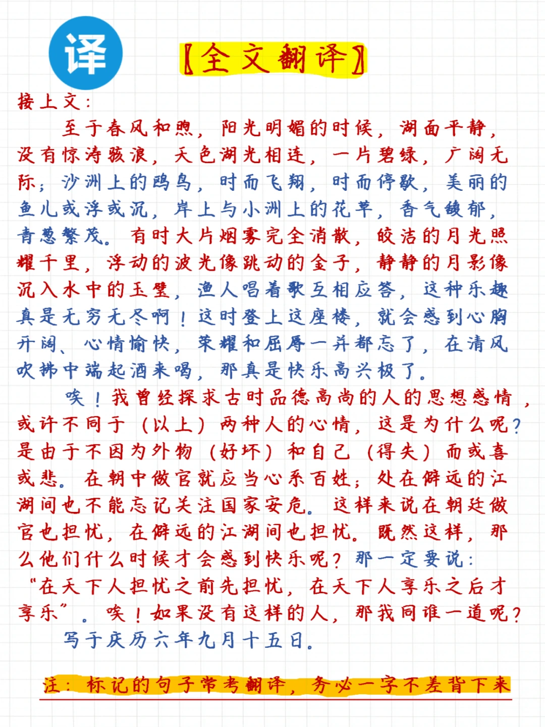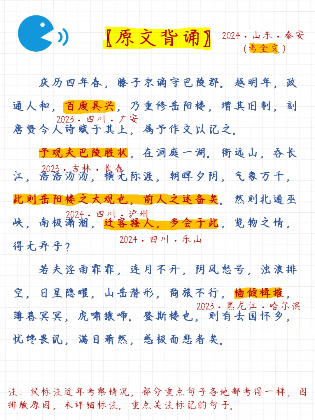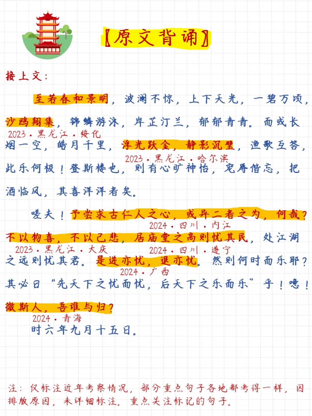 📝这里给大家把《岳阳楼记》的相关考点都梳理好了,包括: