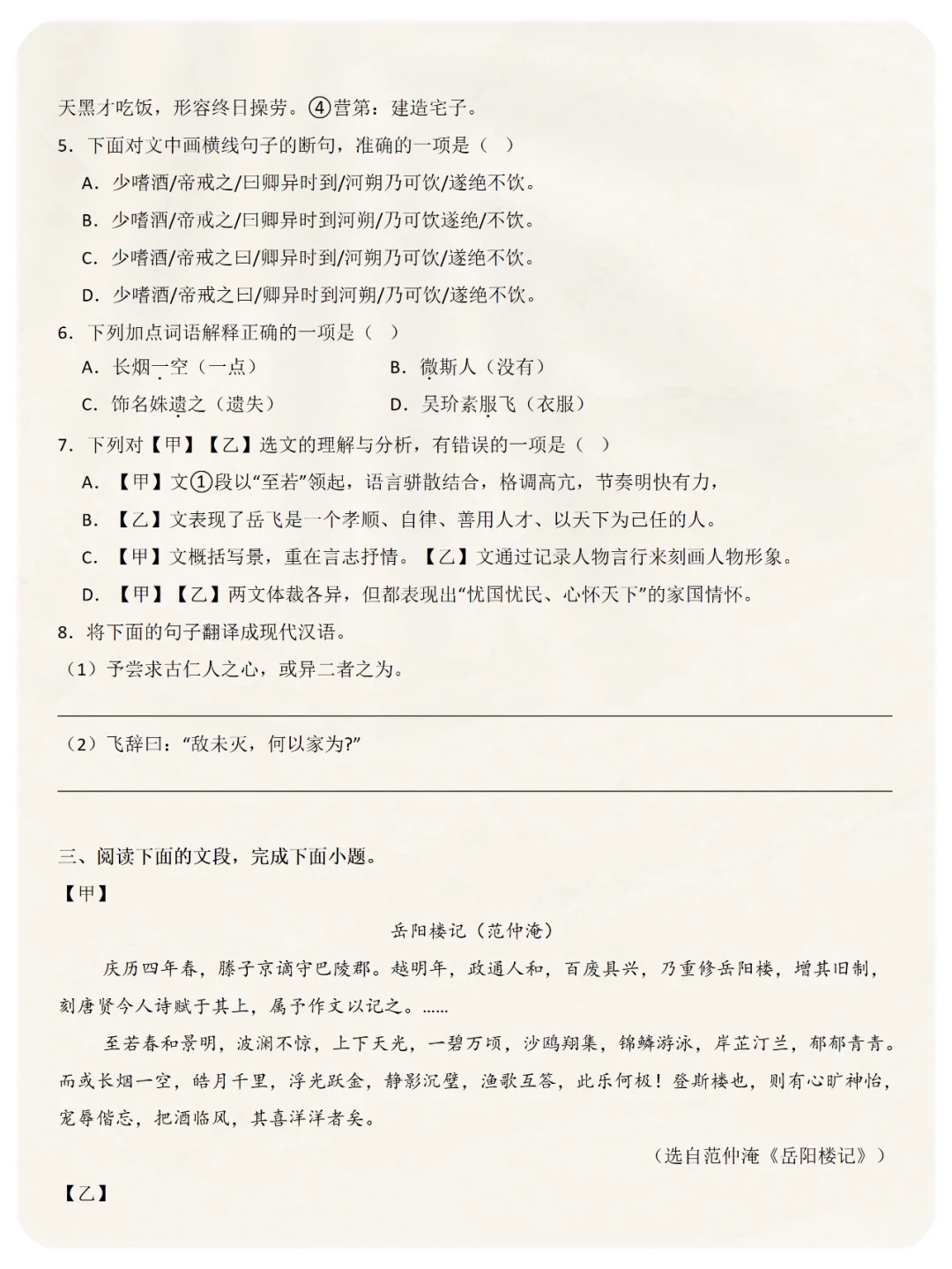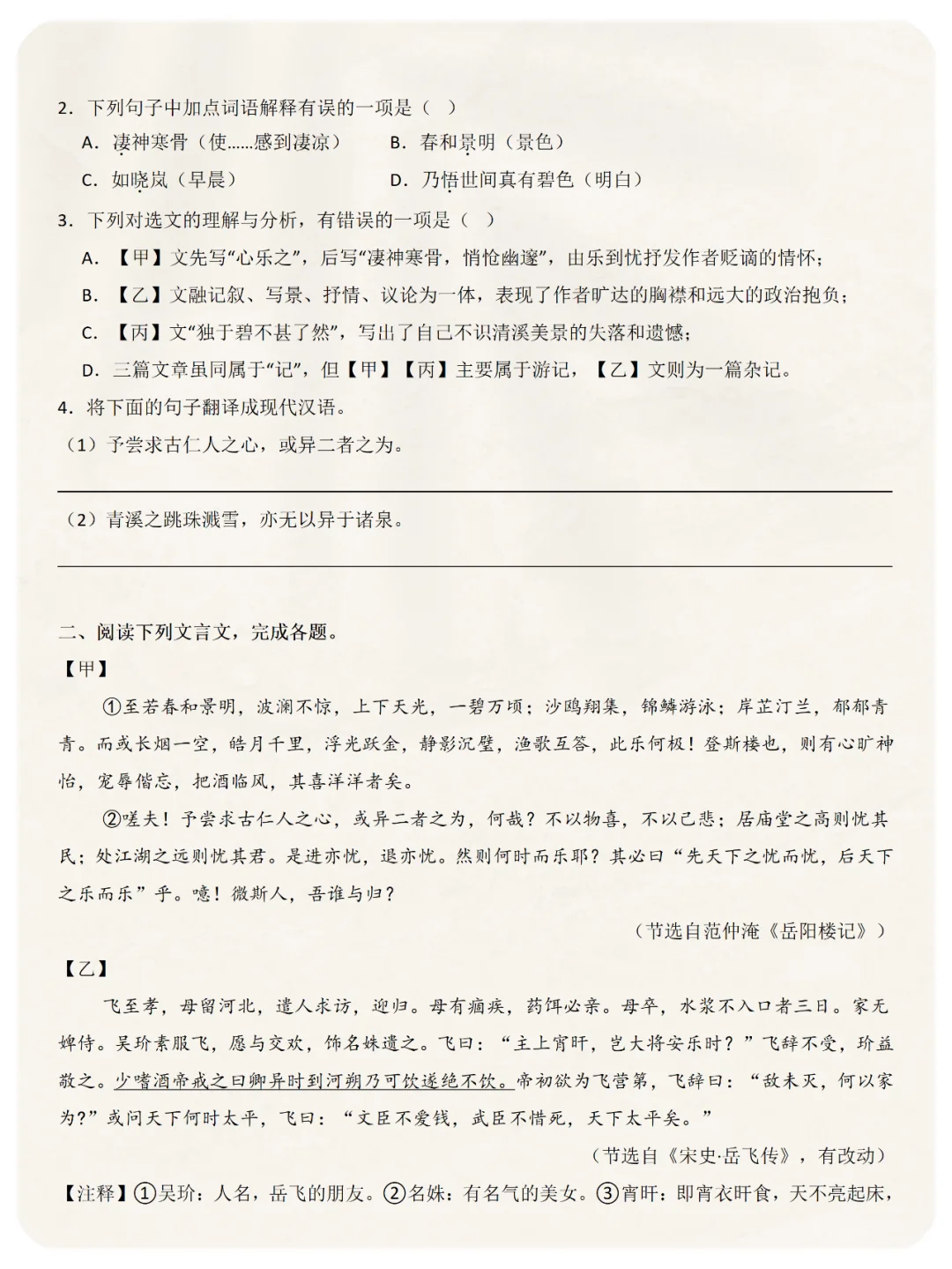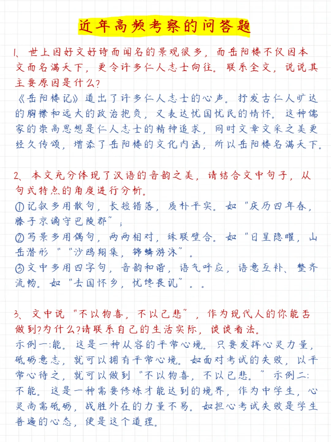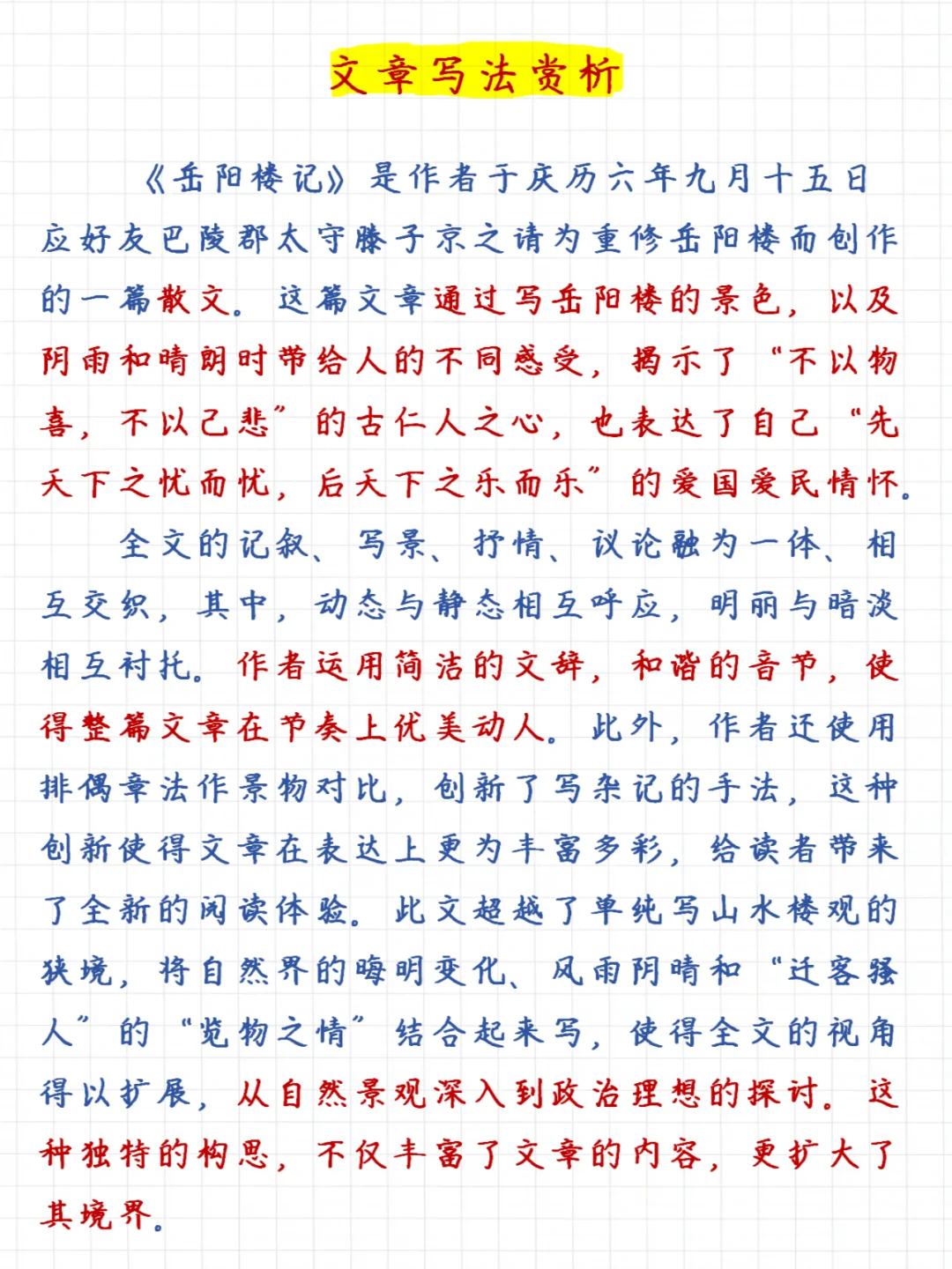 📝这里给大家把《岳阳楼记》的相关考点都梳理好了,包括: