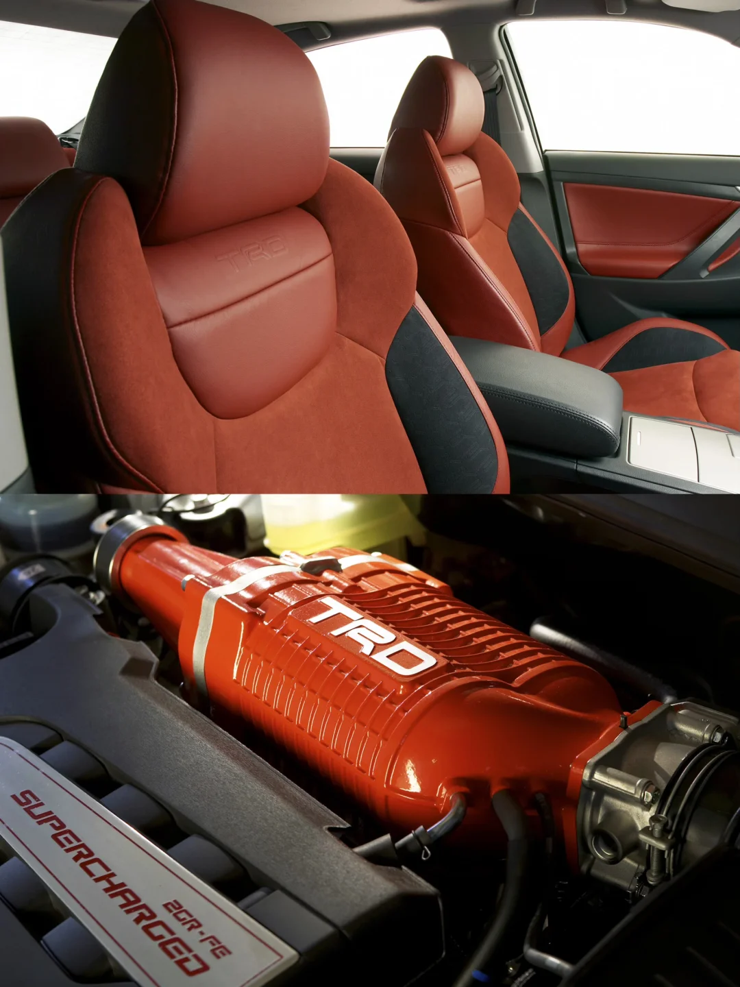 1.搭载3.5L 2GR-FE V6发动机,加装Eaton TVS机械增压器,最大功率323 PS(238 kW),峰值扭矩400 N·m。加速表现:0-100 km/h官方数据6.1秒,实测可达5.9秒,远超同期普通版Aurion(7.8秒)和Camry XV40(7秒)。匹配6速手自一体变速箱,未针对高扭矩强化,长期激烈驾驶可能存在耐用性风险。