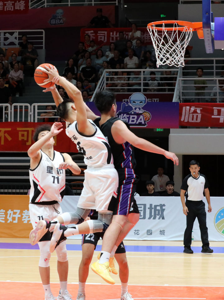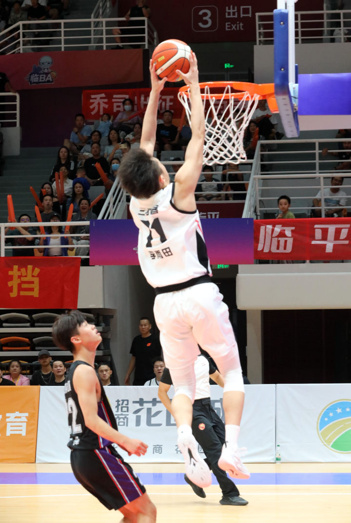 第二节一上来,双方就进入了强度更大的对抗,一时间场上电光火石、人仰马翻,比分也接连从14平,打到16平。NBA上的经典名场面也接踵而至:崇贤队刚扇了星桥队上篮队员一个“火锅大帽”,打击了对手士气,转瞬间星桥队身高190公分的李雨田就在崇贤队篮筐上来了一个双手灌篮,又大大提振了士气!