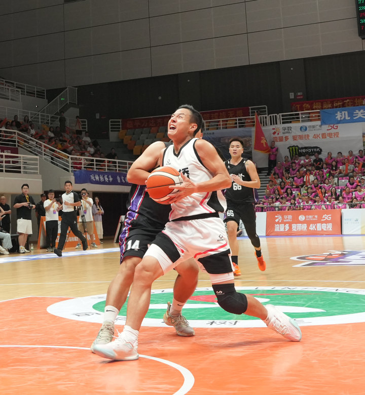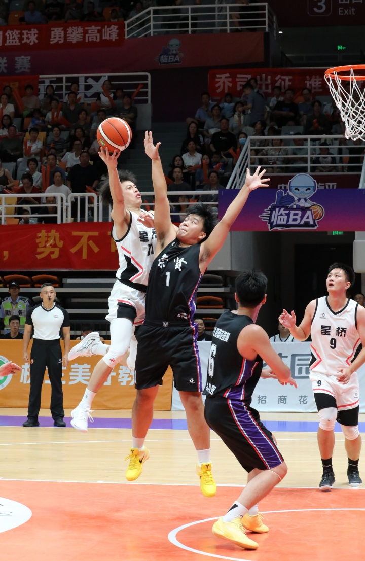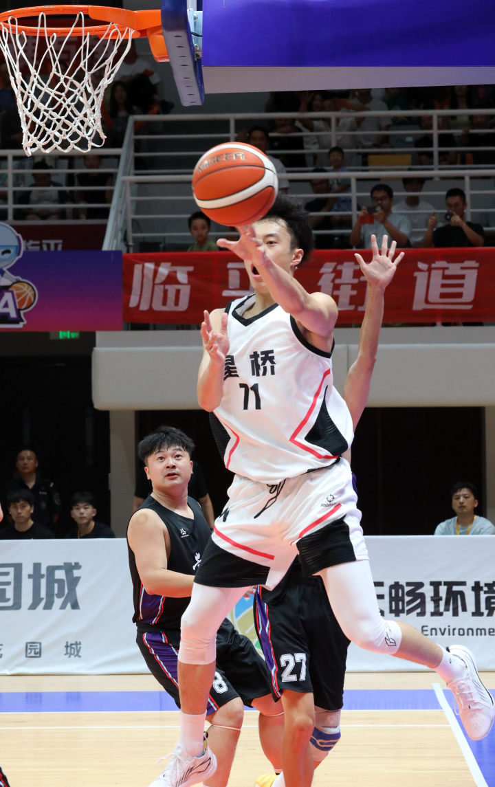 两队比的是球技、拼的是精神,直到星桥队9号王余弯弓搭箭,手起刀落以一记3分拉大比分,带队44:38稳稳领先结束了第三节。